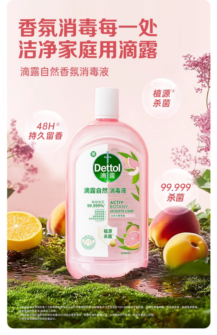 Dettol Fragrance Natural Clothes Disinfectant UV Grade Sterilization 48H Fragrance Laundry Deodorization Children's 1000ml