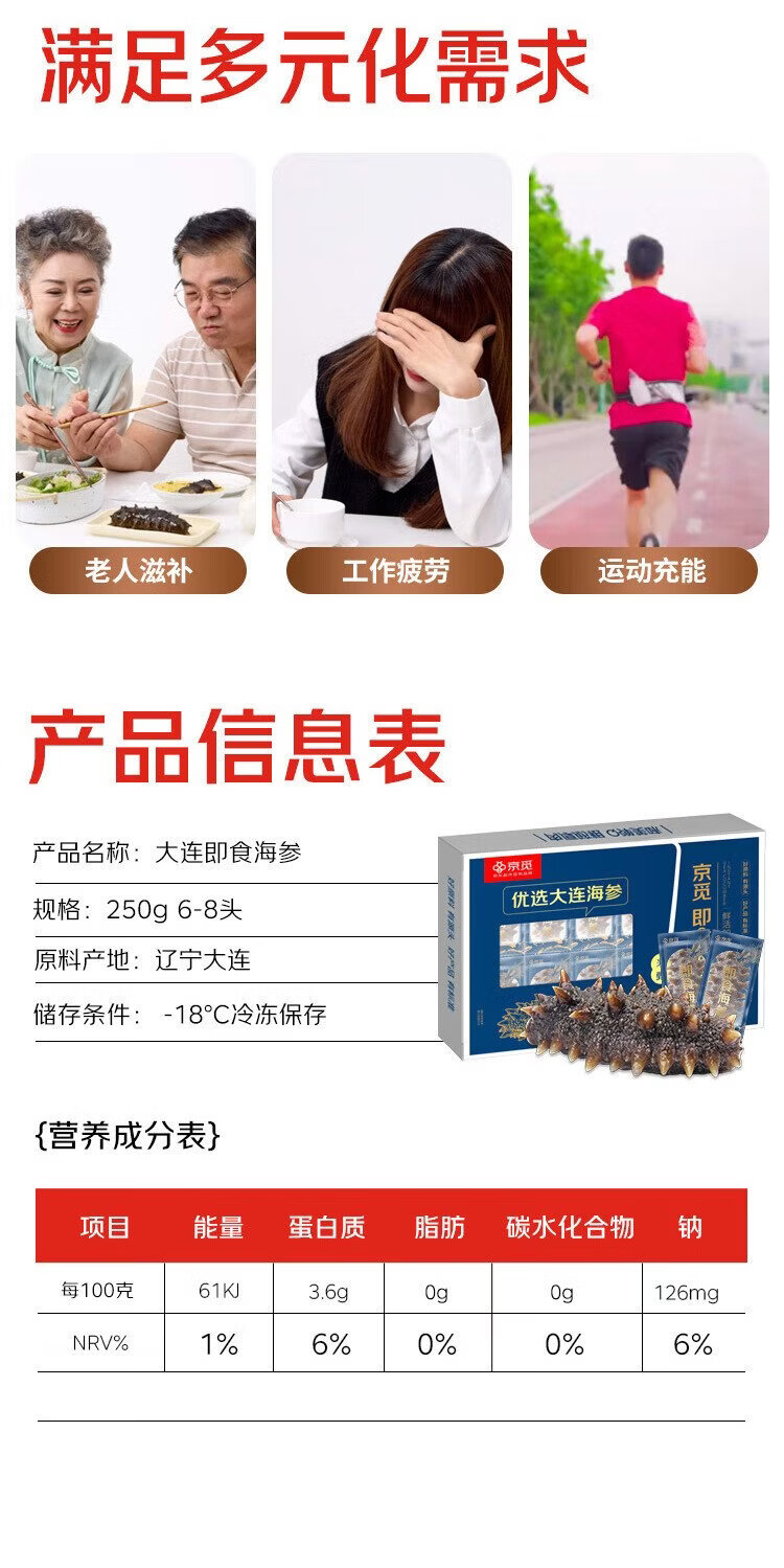 Jingmi Dalian ready-to-eat sea cucumber 250g 6-8 pieces, solid content 85%, authentic Liao sea cucumber, family pack