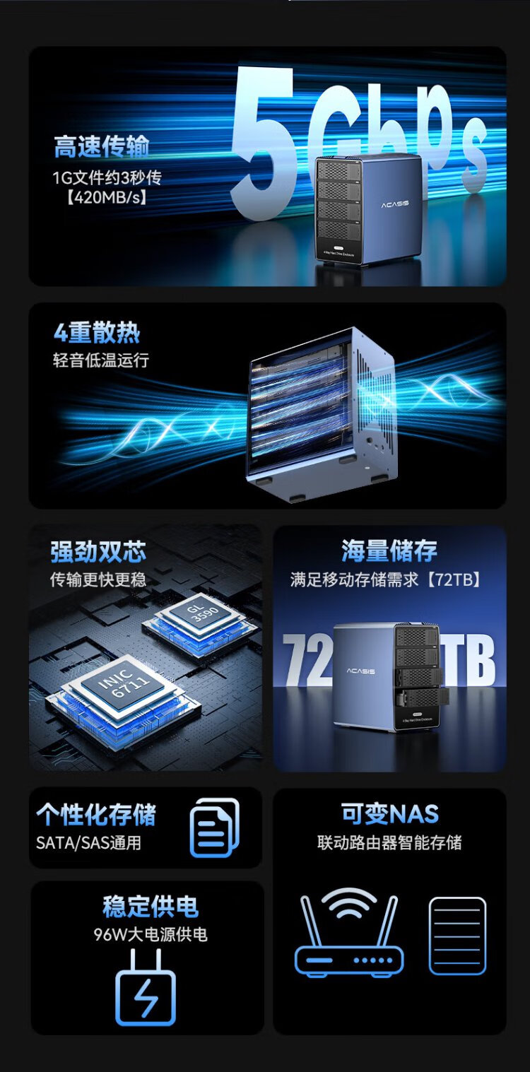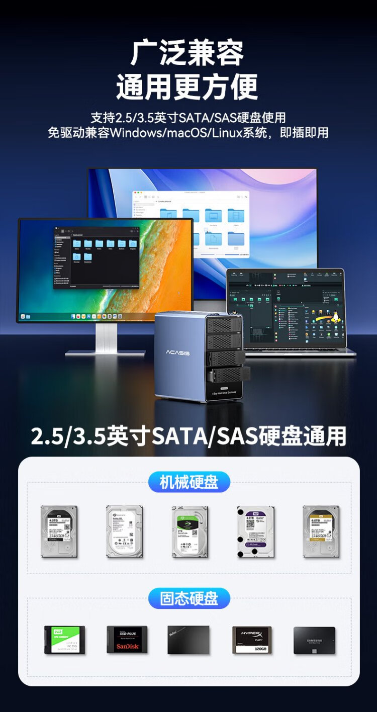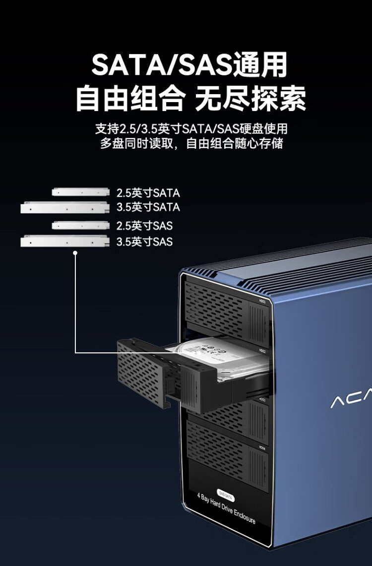 Acasis (acasis) SAS hard drive box cabinet 2.5/3.5 inches USB3.0 desktop notebook SATA/SAS serial port mechanical solid-state ssd external hard drive box four-bay EC1003