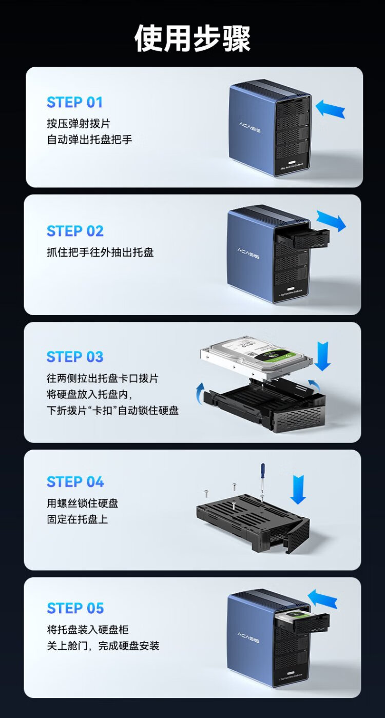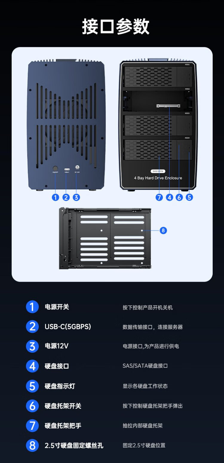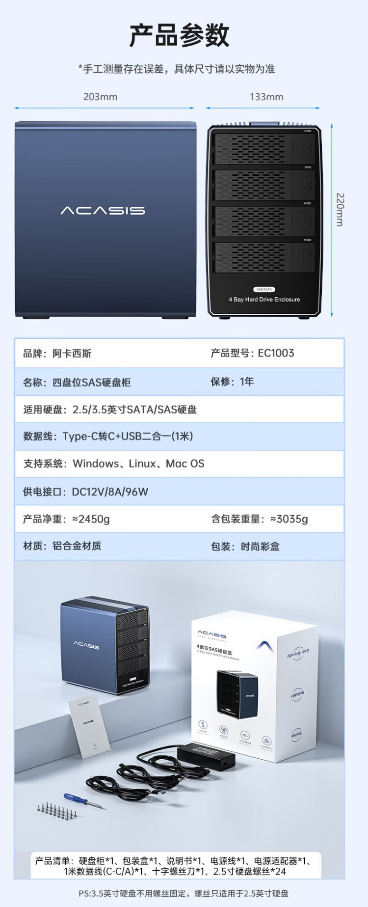 Acasis (acasis) SAS hard drive box cabinet 2.5/3.5 inches USB3.0 desktop notebook SATA/SAS serial port mechanical solid-state ssd external hard drive box four-bay EC1003