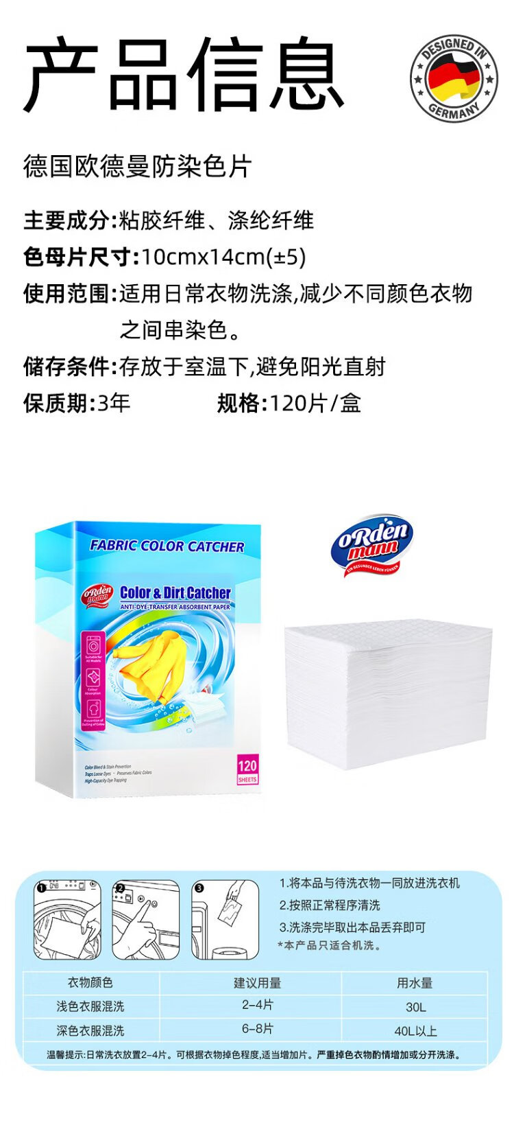 Oldman German clothing anti-cross-color color absorbing film 120 pieces color masterbatch anti-staining washing machine color separation film