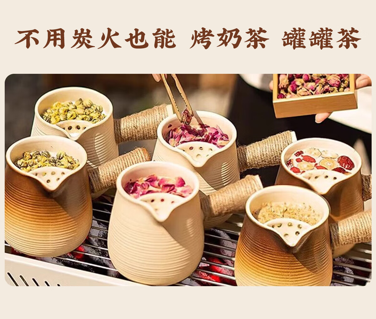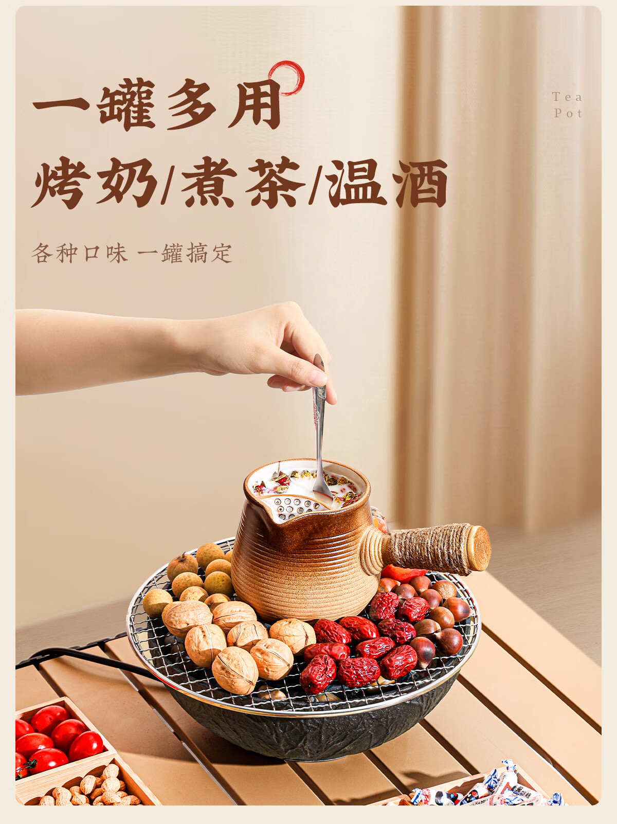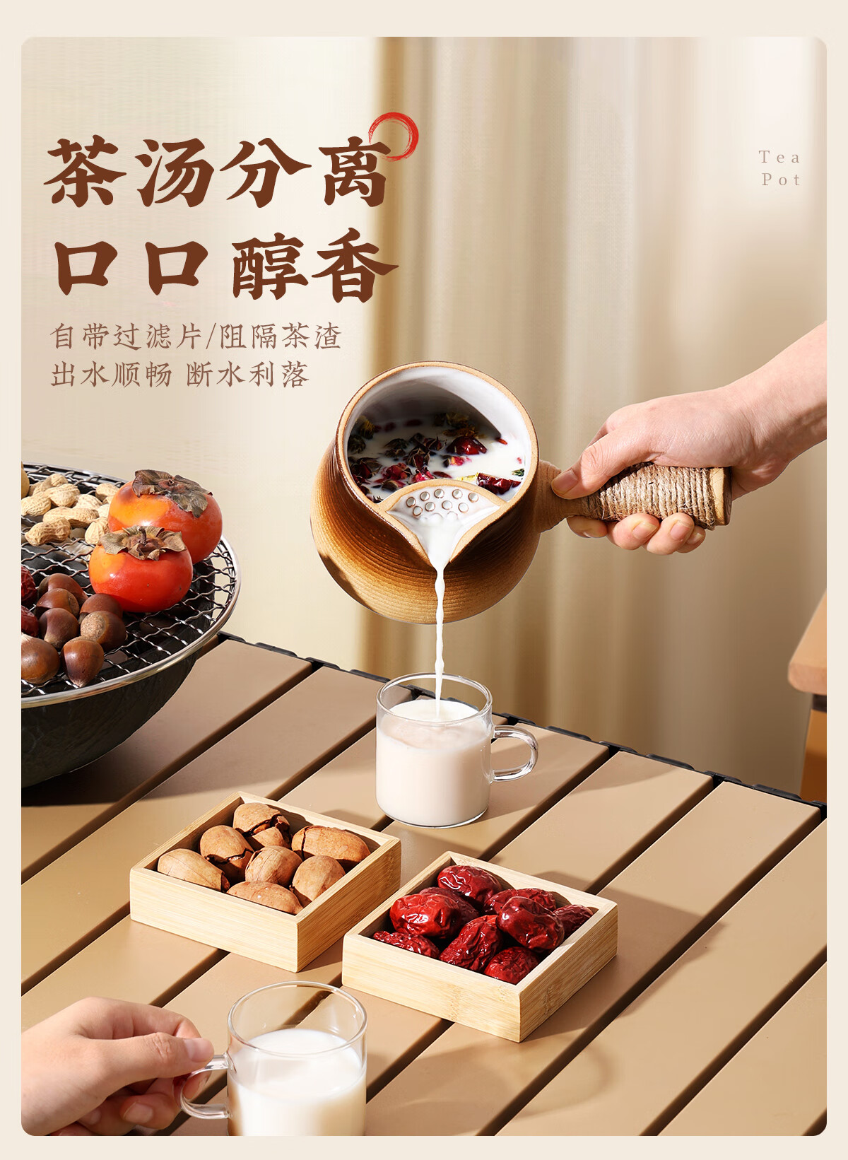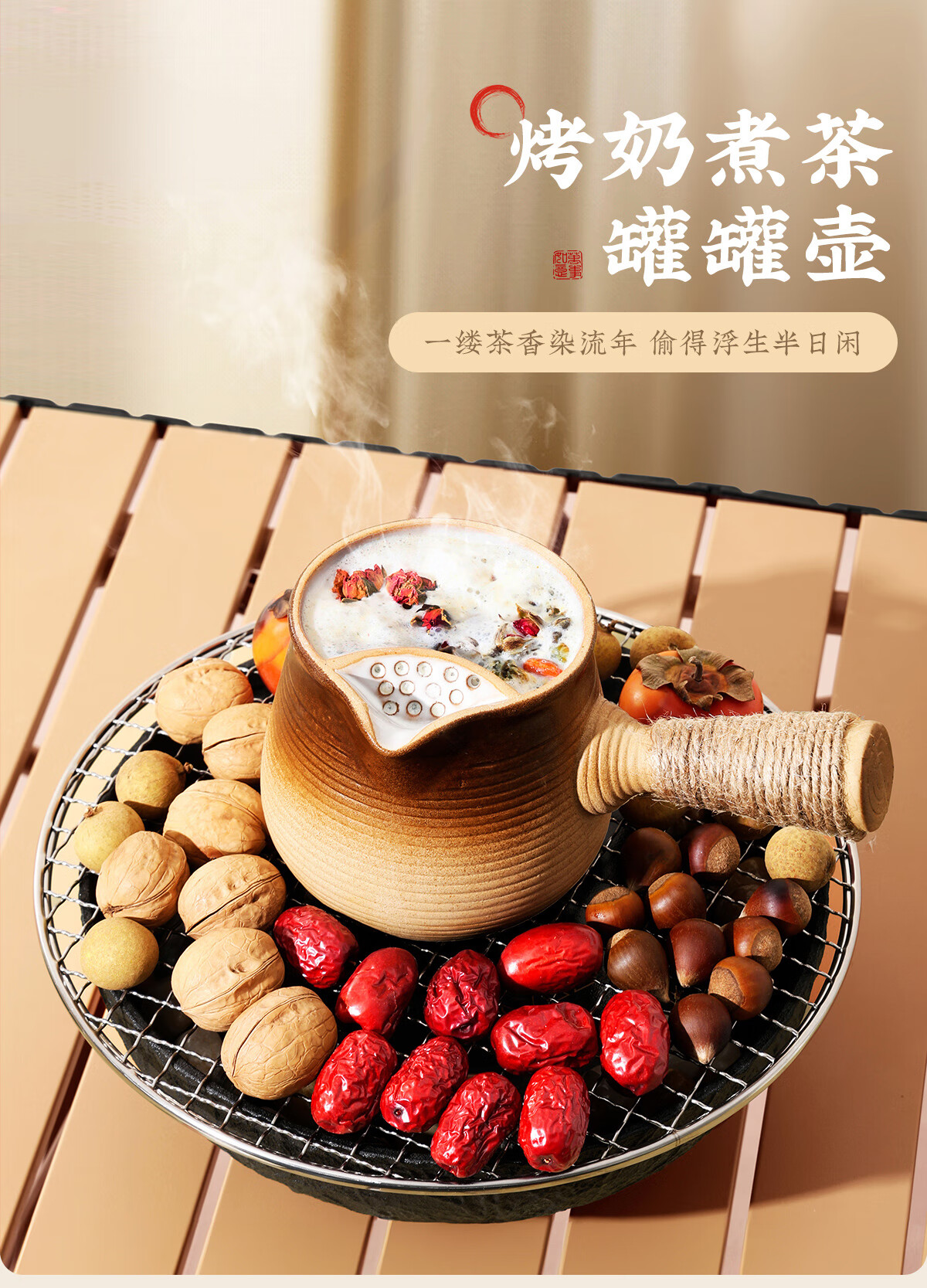 Eight Thousand Lines Fireside Tea Kettle Ceramic Side Handle Roasted Milk Can Large Capacity Indoor and Outdoor Tea Making Equipment Can Be Used to Boil the Kettle over an Open Fire