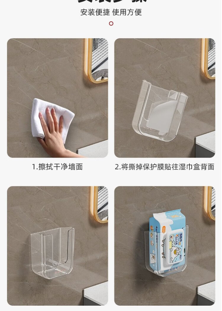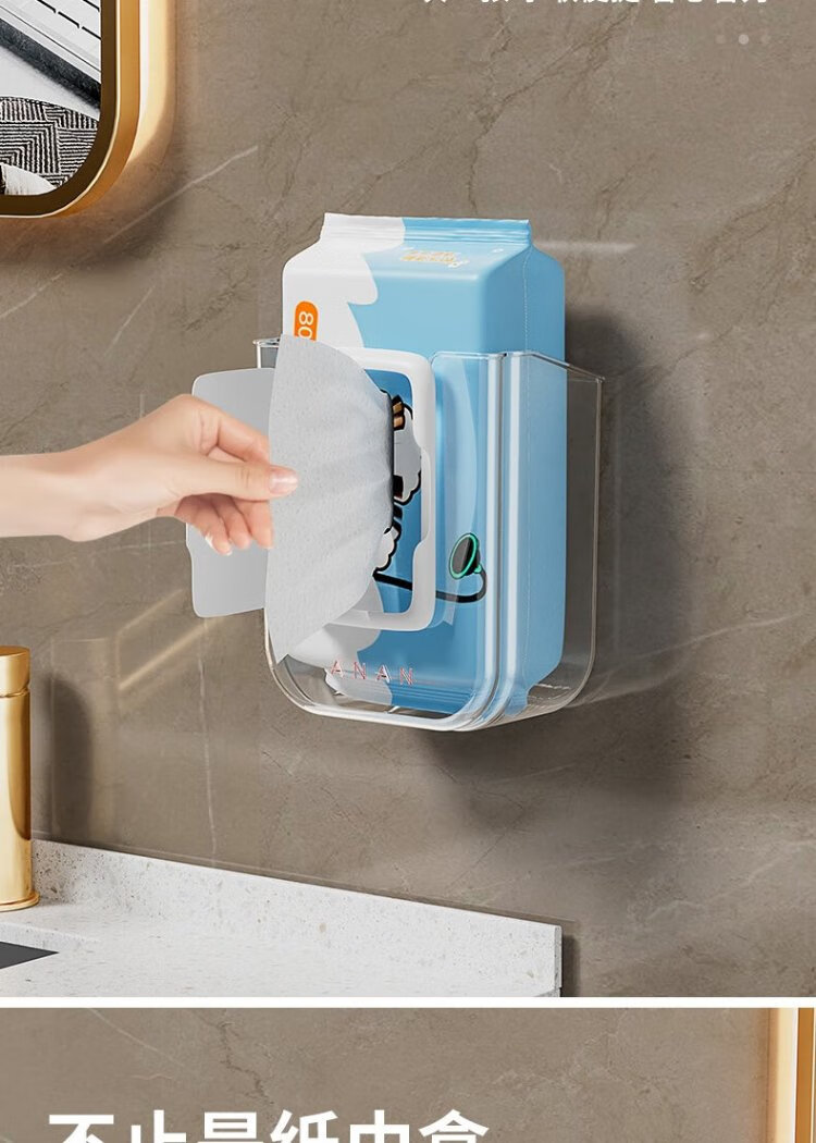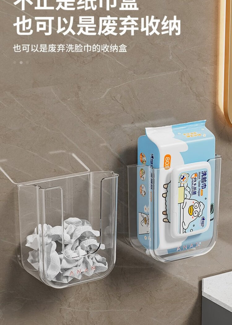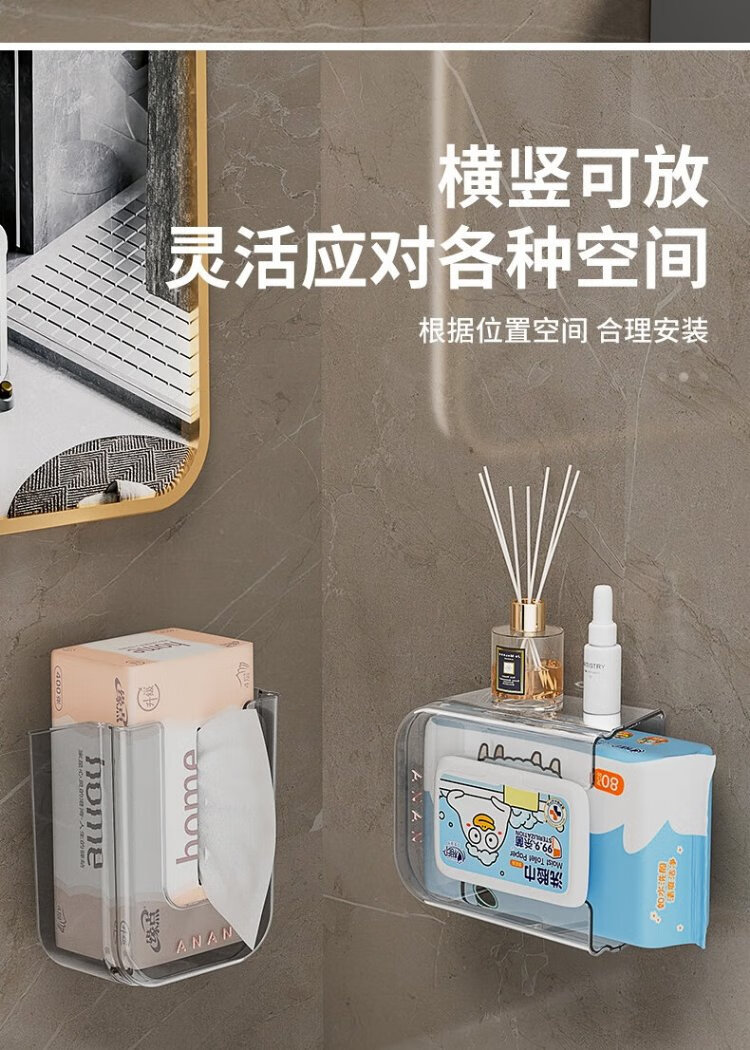 Bingyou wet tissue storage box 2 pack tissue box punch-free bathroom wall-mounted toilet paper box wet tissue box