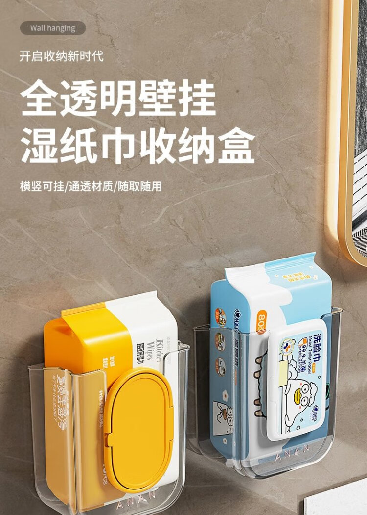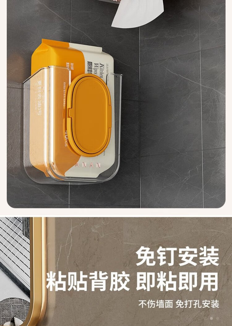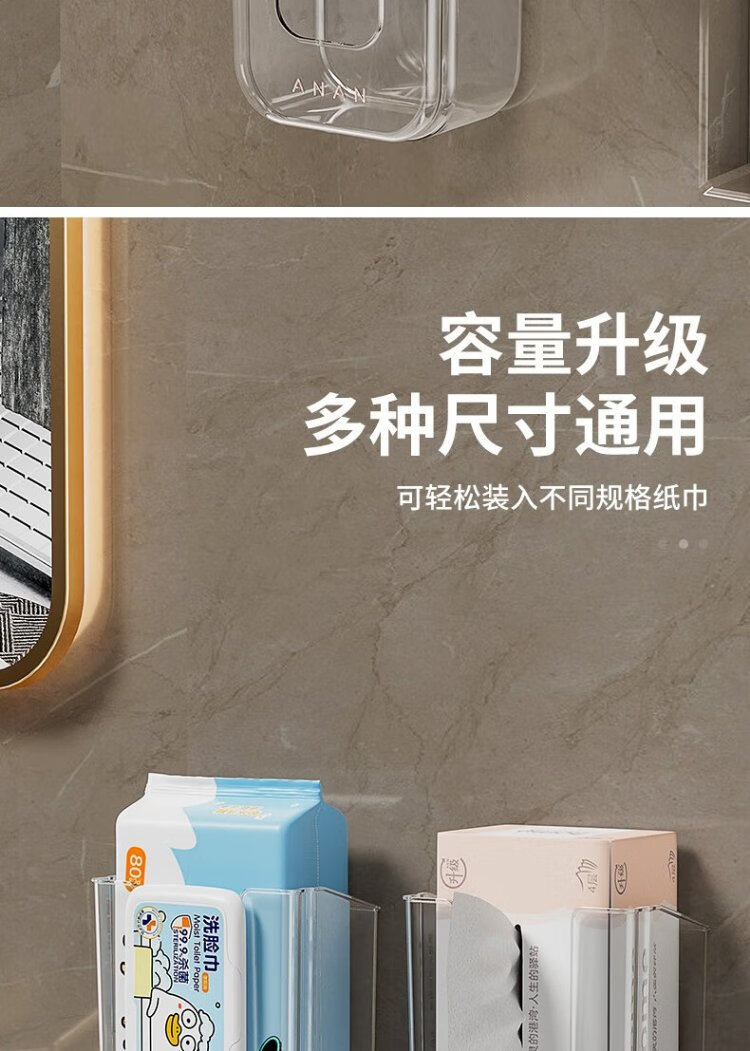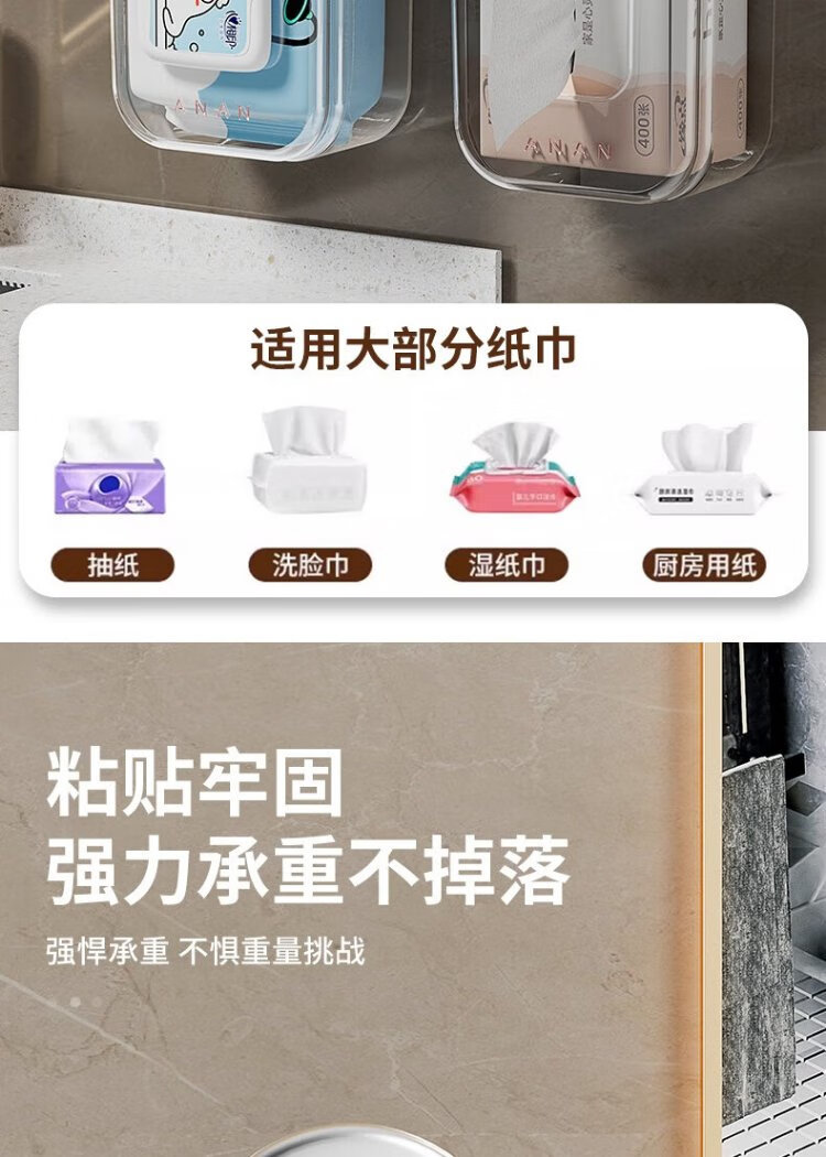 Bingyou wet tissue storage box 2 pack tissue box punch-free bathroom wall-mounted toilet paper box wet tissue box