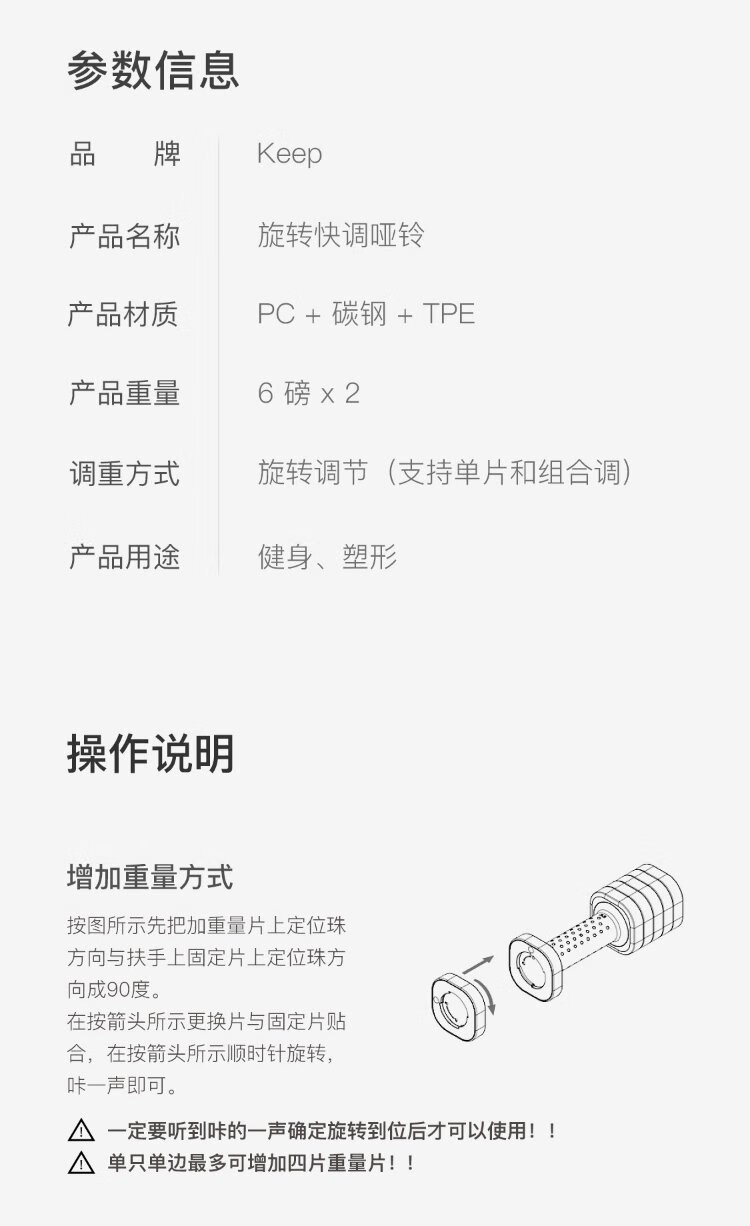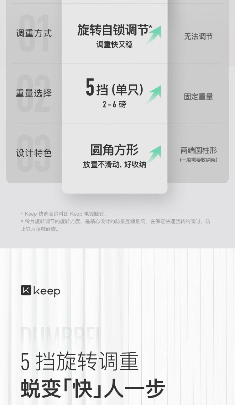 Keep quick-adjustable dumbbells, adjustable multi-speed weight combination dumbbells, household men's and women's strength training dumbbells 2.7kg*2