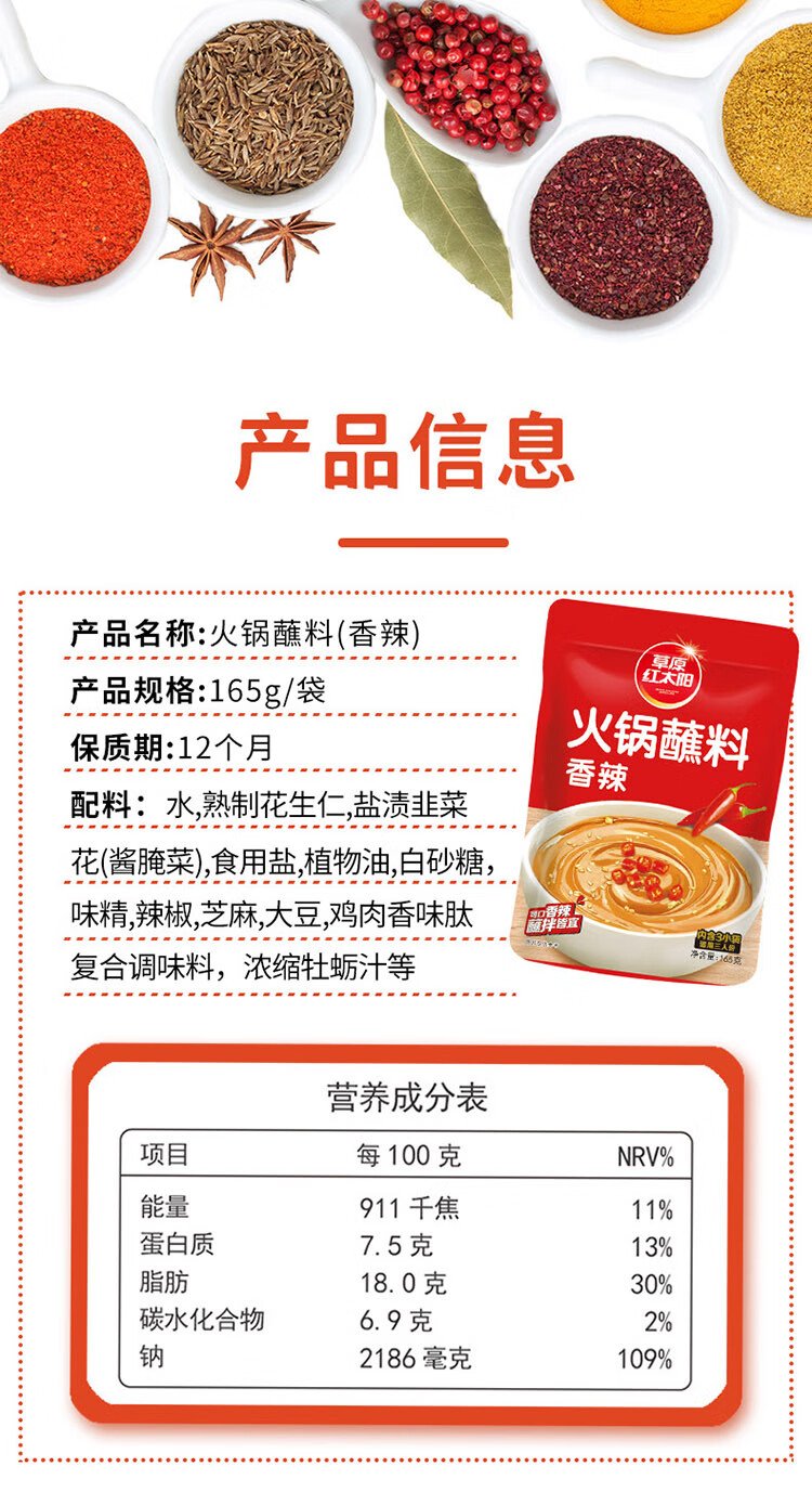 Prairie Red Sun spicy hot pot dipping sauce 165g