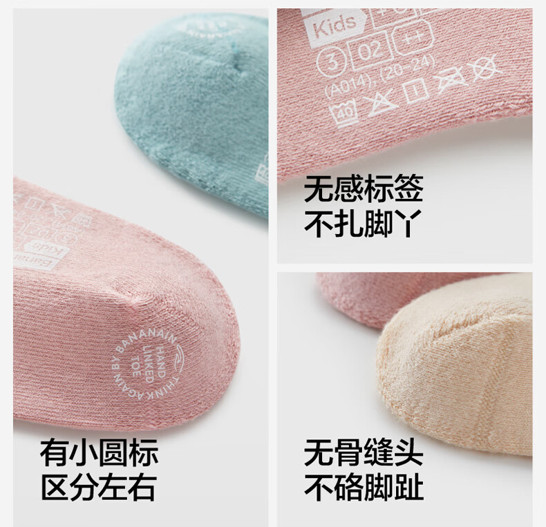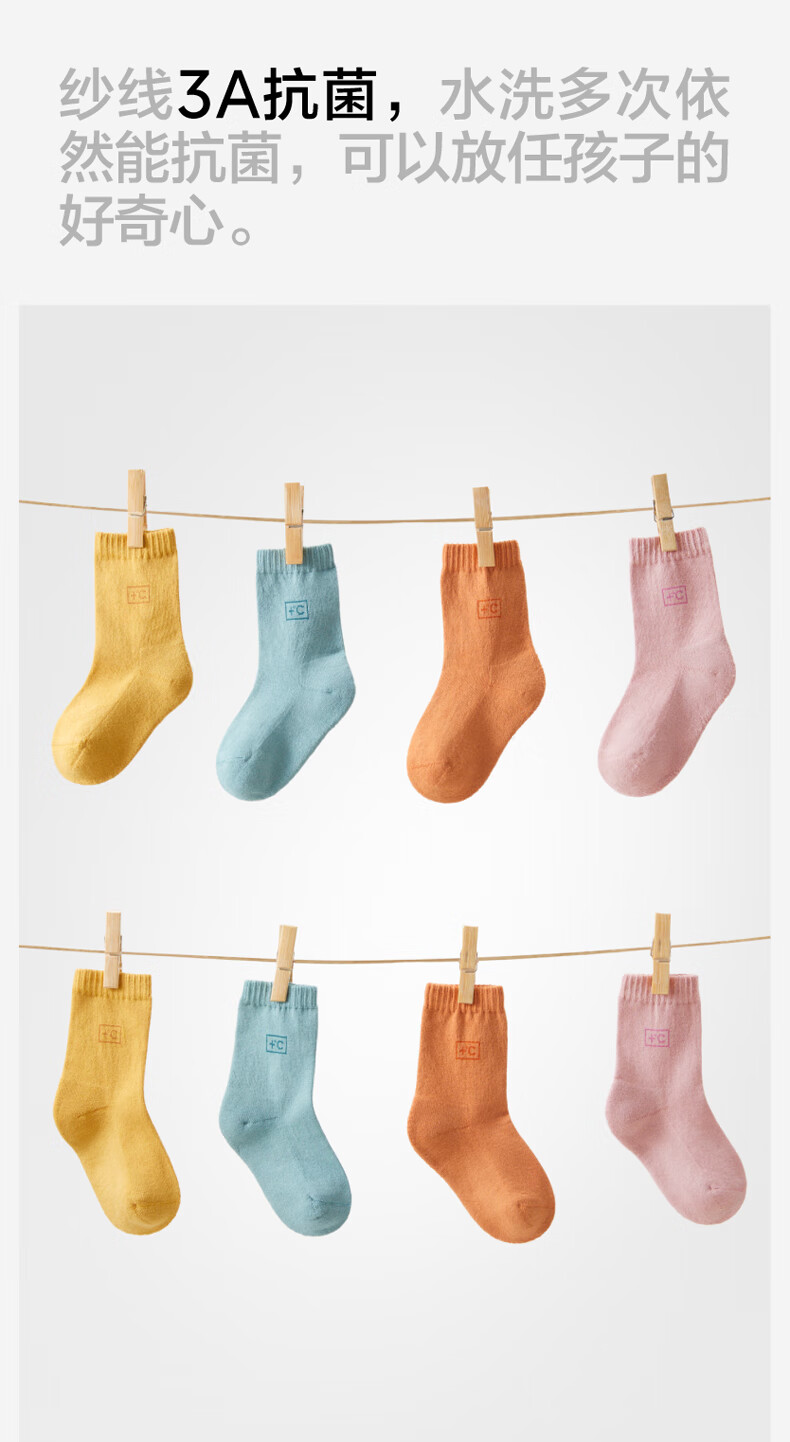 Jiao Nei Xiaorepi 302++ children's socks for boys and girls, warm Xinjiang cotton antibacterial and deodorant autumn and winter mid-tube socks 3 pairs