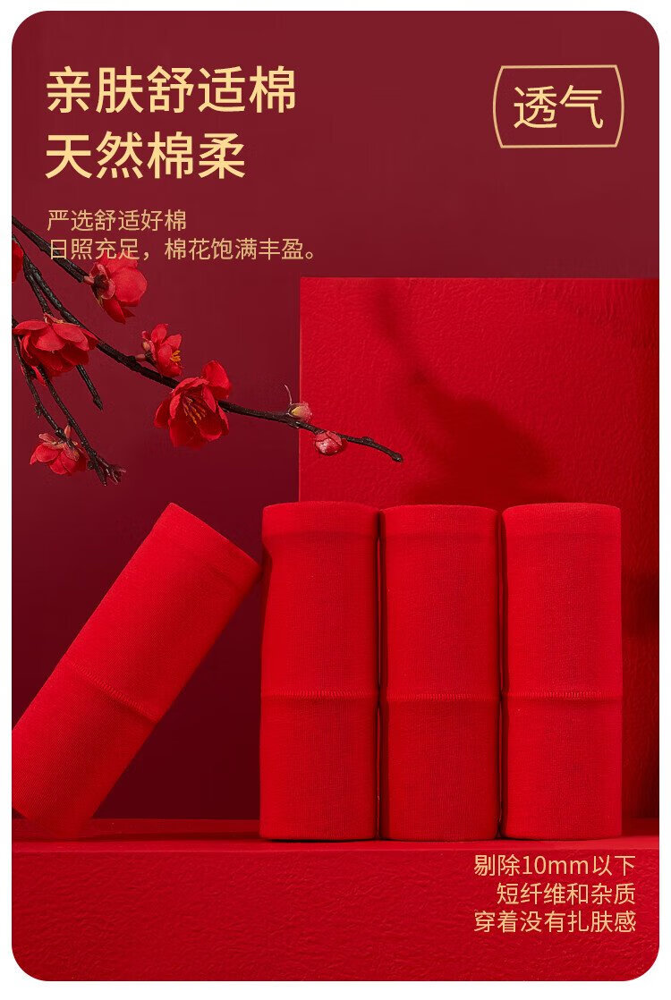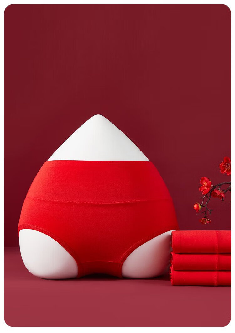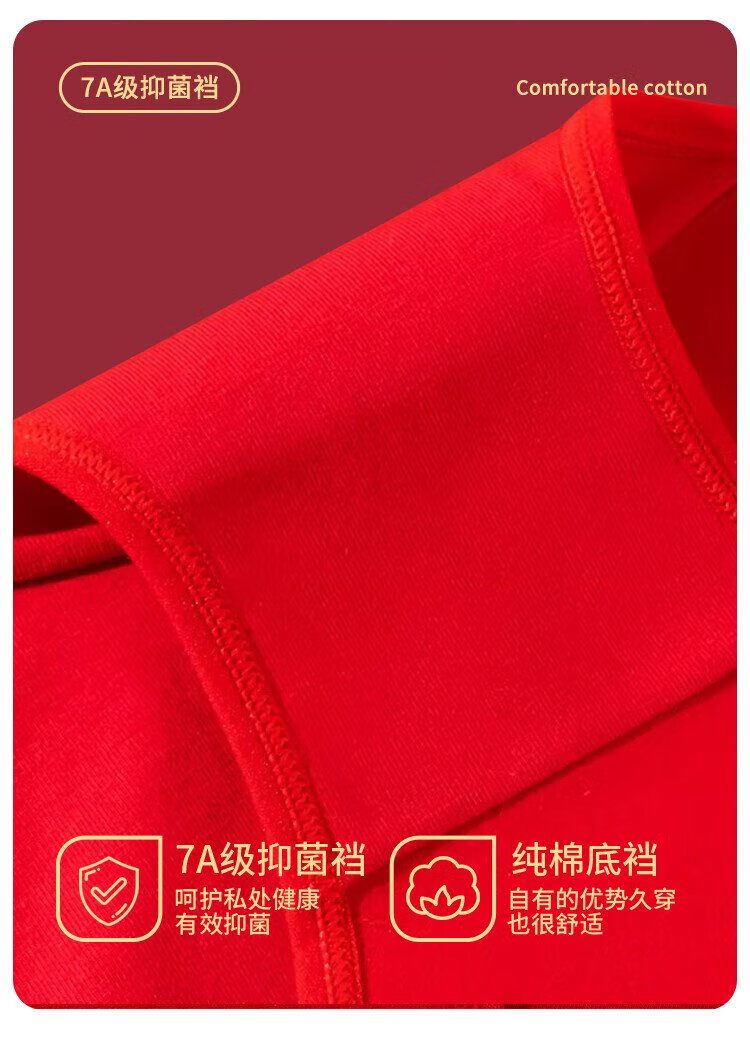 Urban beauty's zodiac year, the year of the horse, ladies' bright red underwear, women's pure cotton high-waisted belly-controlling large size antibacterial lucky briefs 4 pairs XL