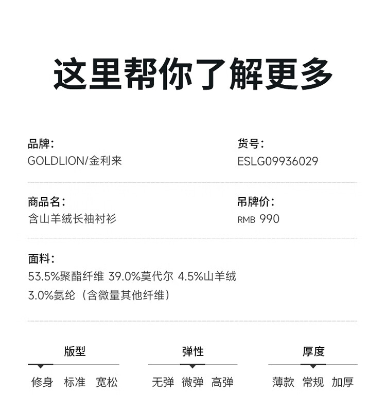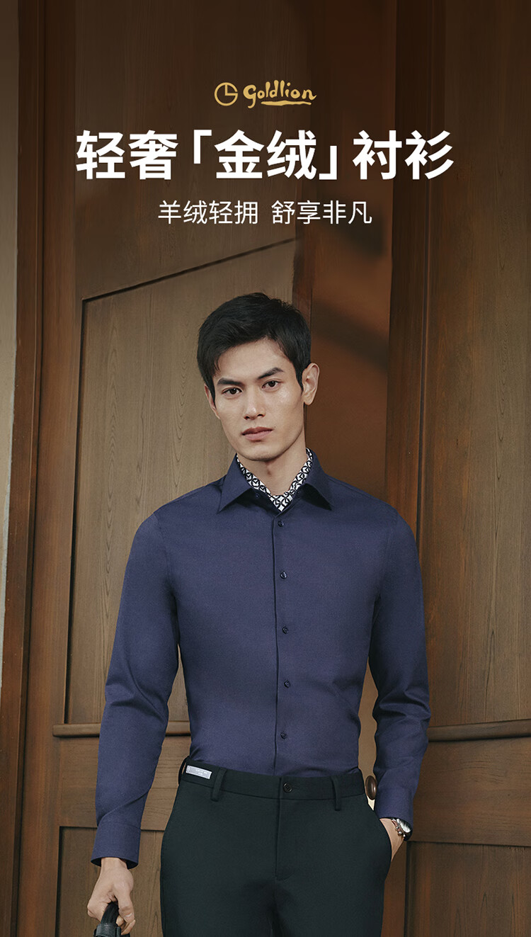 Goldlion Warm Cashmere/Soft Skin Friendly 25 Autumn and Winter Men's Warm Shirt Light Luxury Business Casual Cashmere Shirt