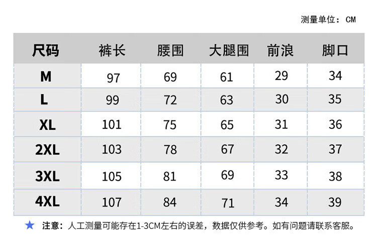 Outseam (cm) 99 cm 101.5 cm 104 cm 106.5 cm 109 cm