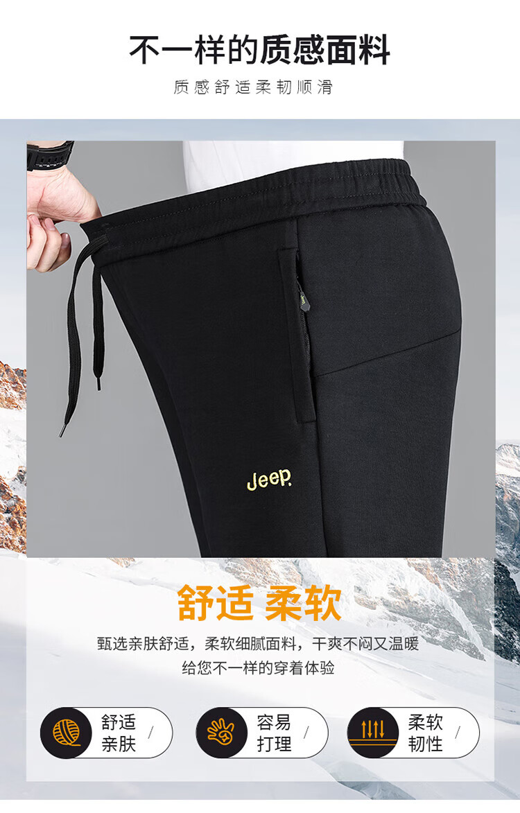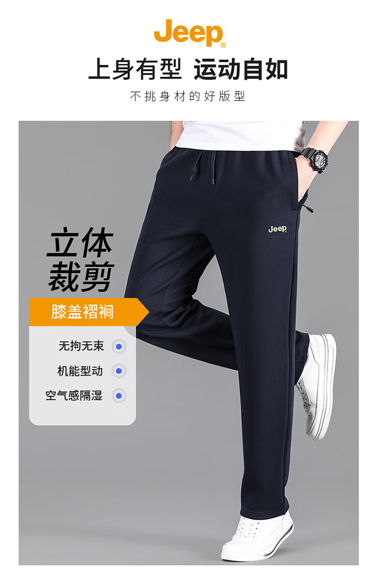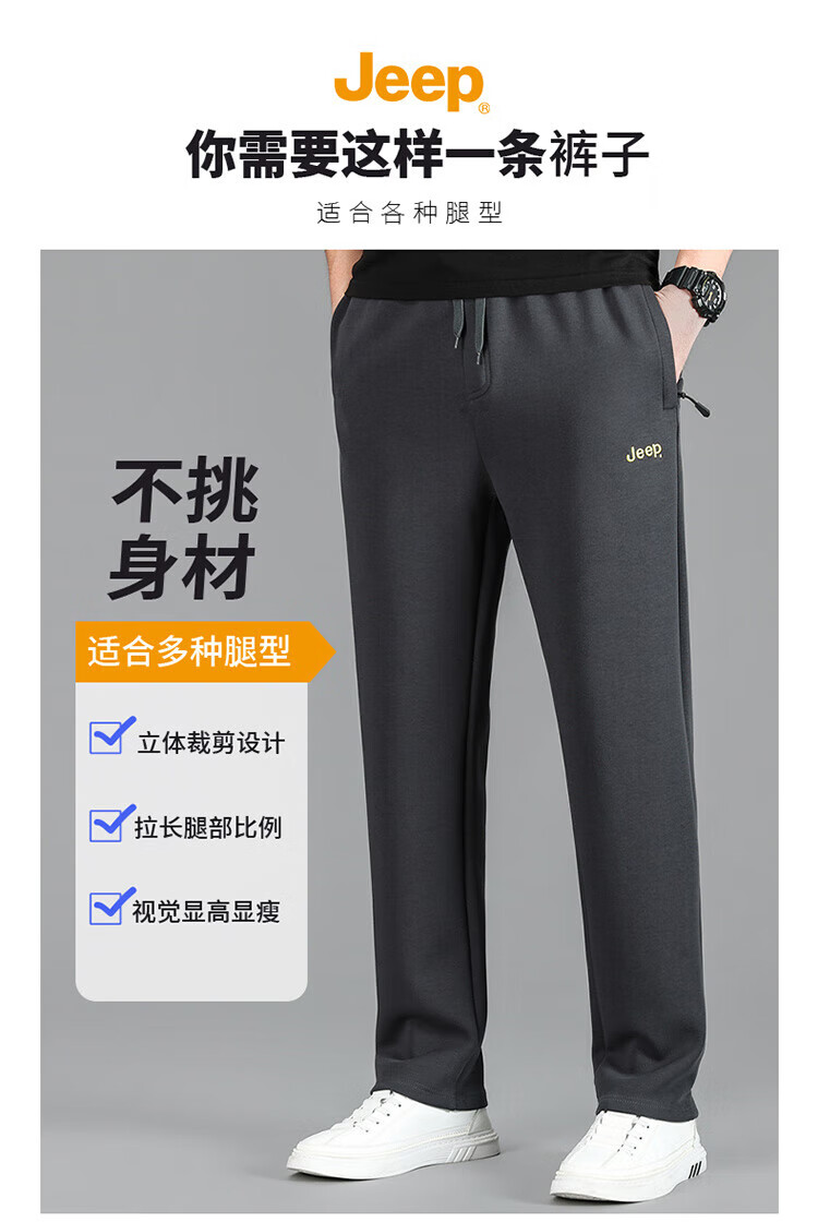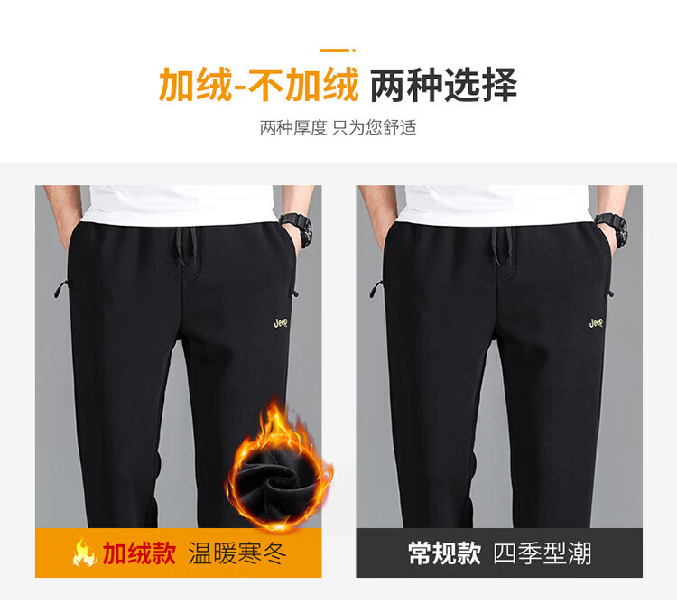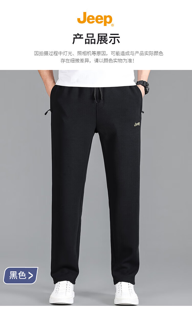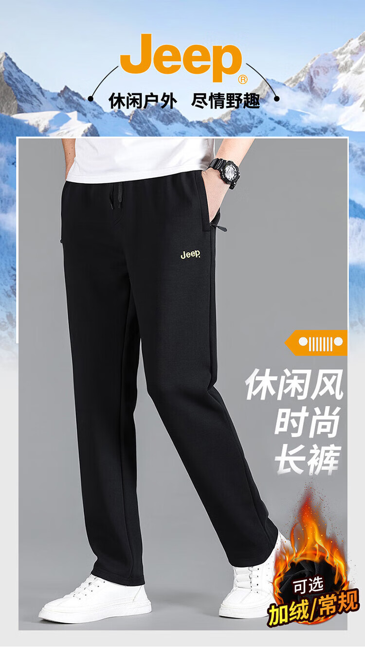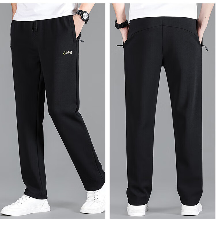 Jeep (JEEP) casual pants for men in autumn and winter, loose, trendy, versatile straight pants, men's sports pants, black 2XL