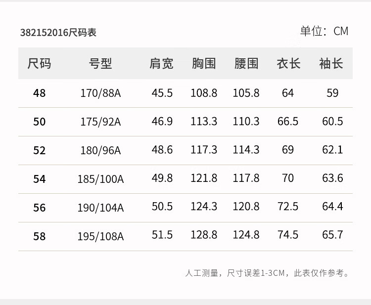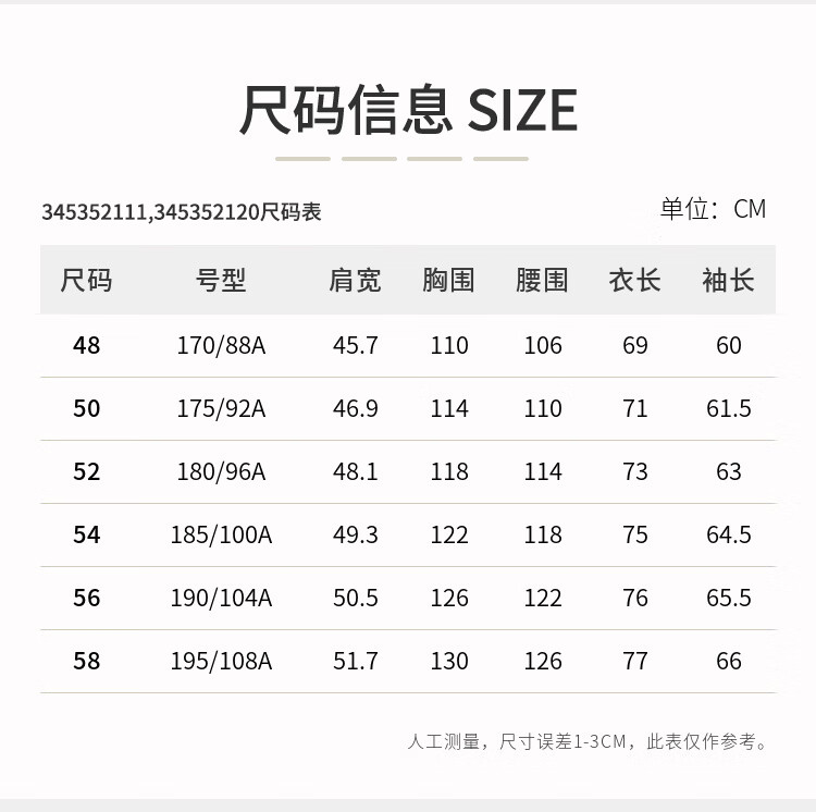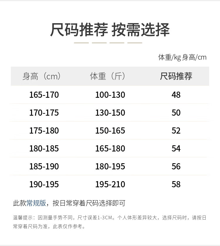 China (cm) 160-165/84-86 165-170 / 88-90 167-172 / 92-96 168-173 / 98-102 170-176 / 106-110