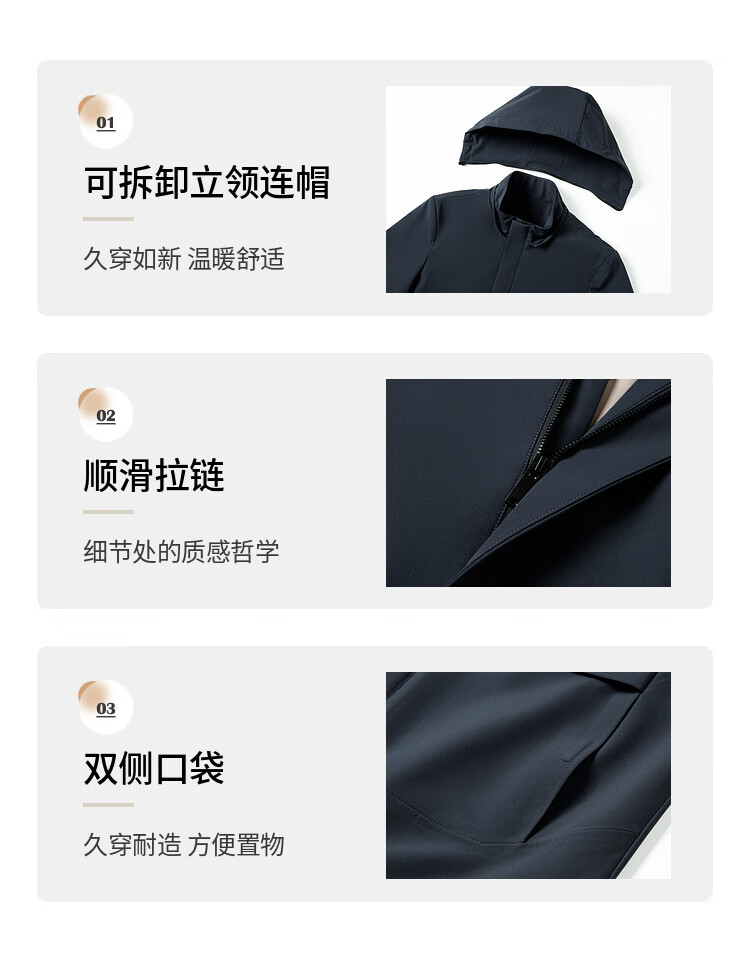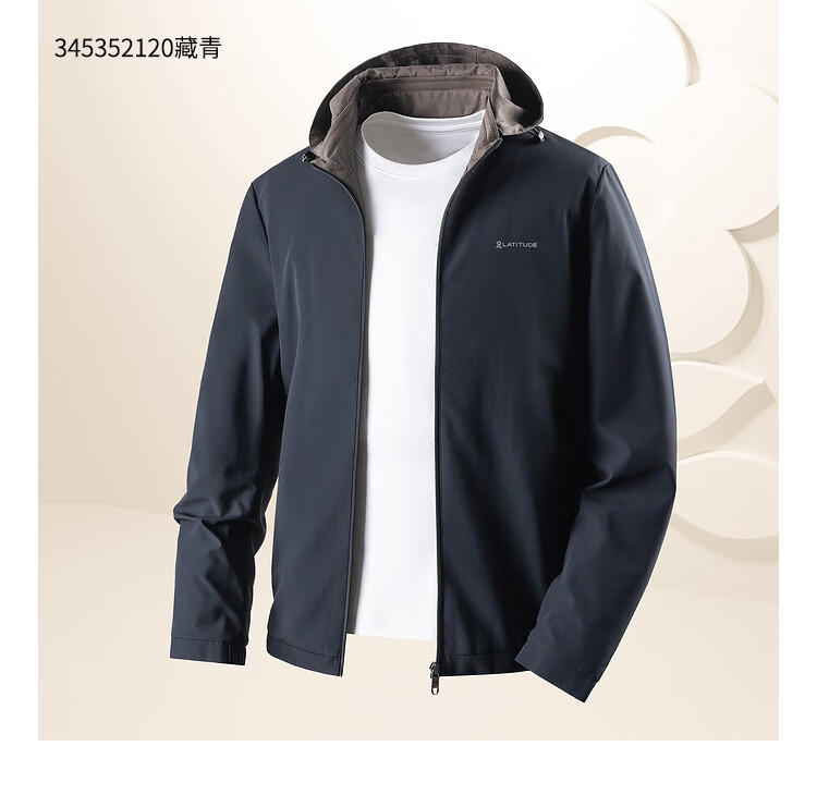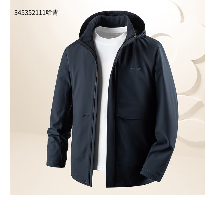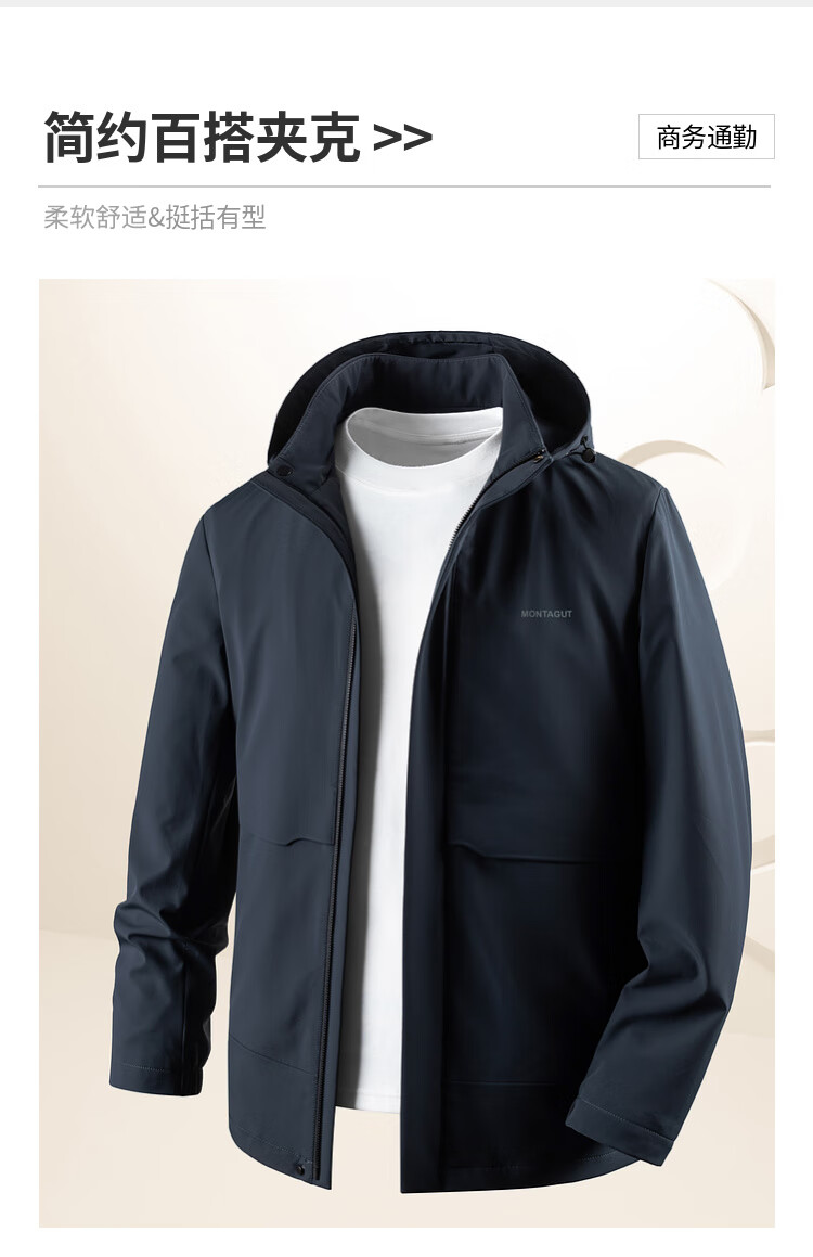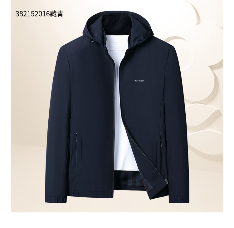 MONTAGUT Spring and Autumn Men's Jacket Hooded Removable Casual Work Jacket Sturdy Anti-Wrinkle Windproof Navy XL
