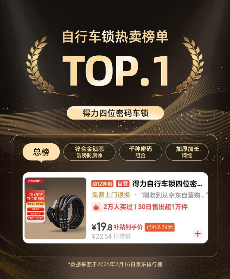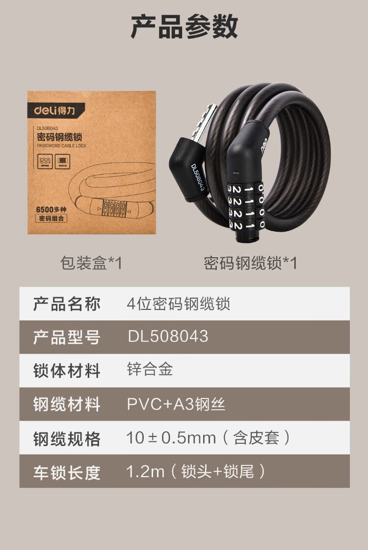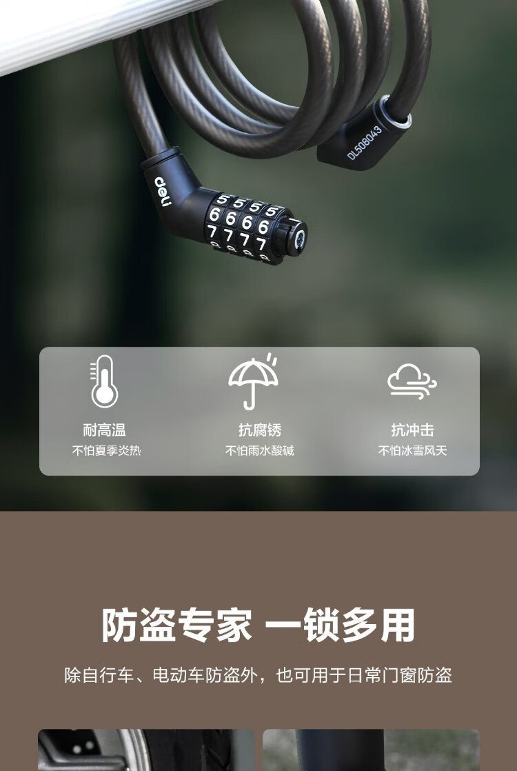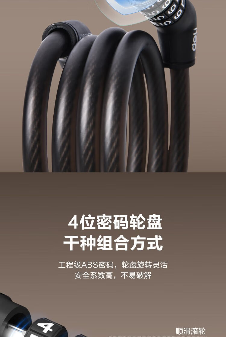 Deli bicycle lock four-digit code lock anti-theft scissors smart glass door lock mountain bike ring lock