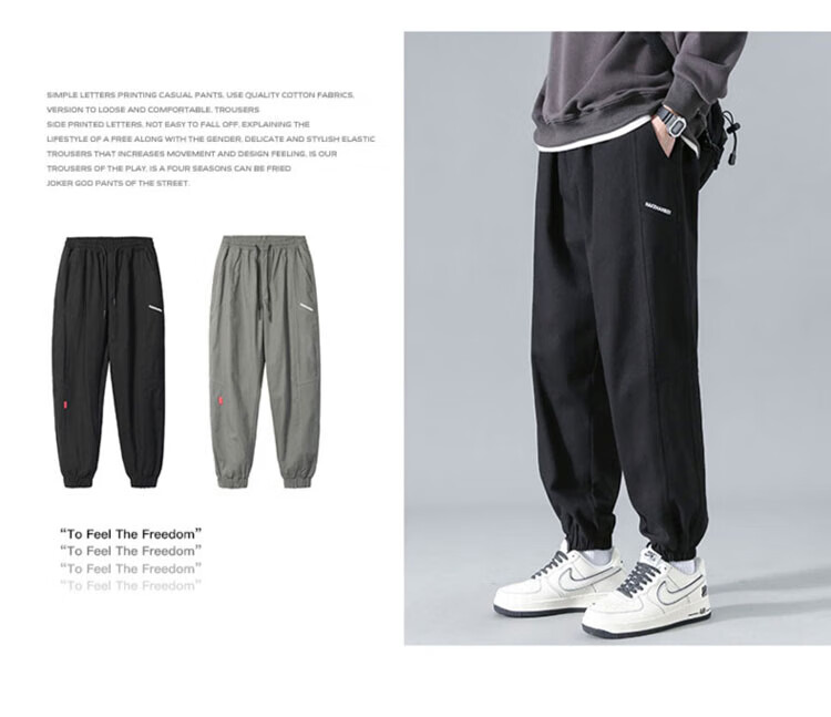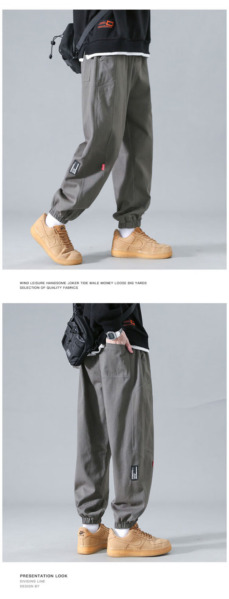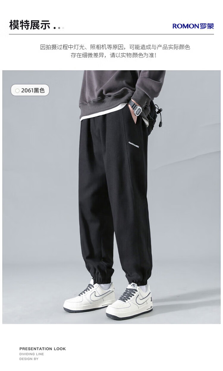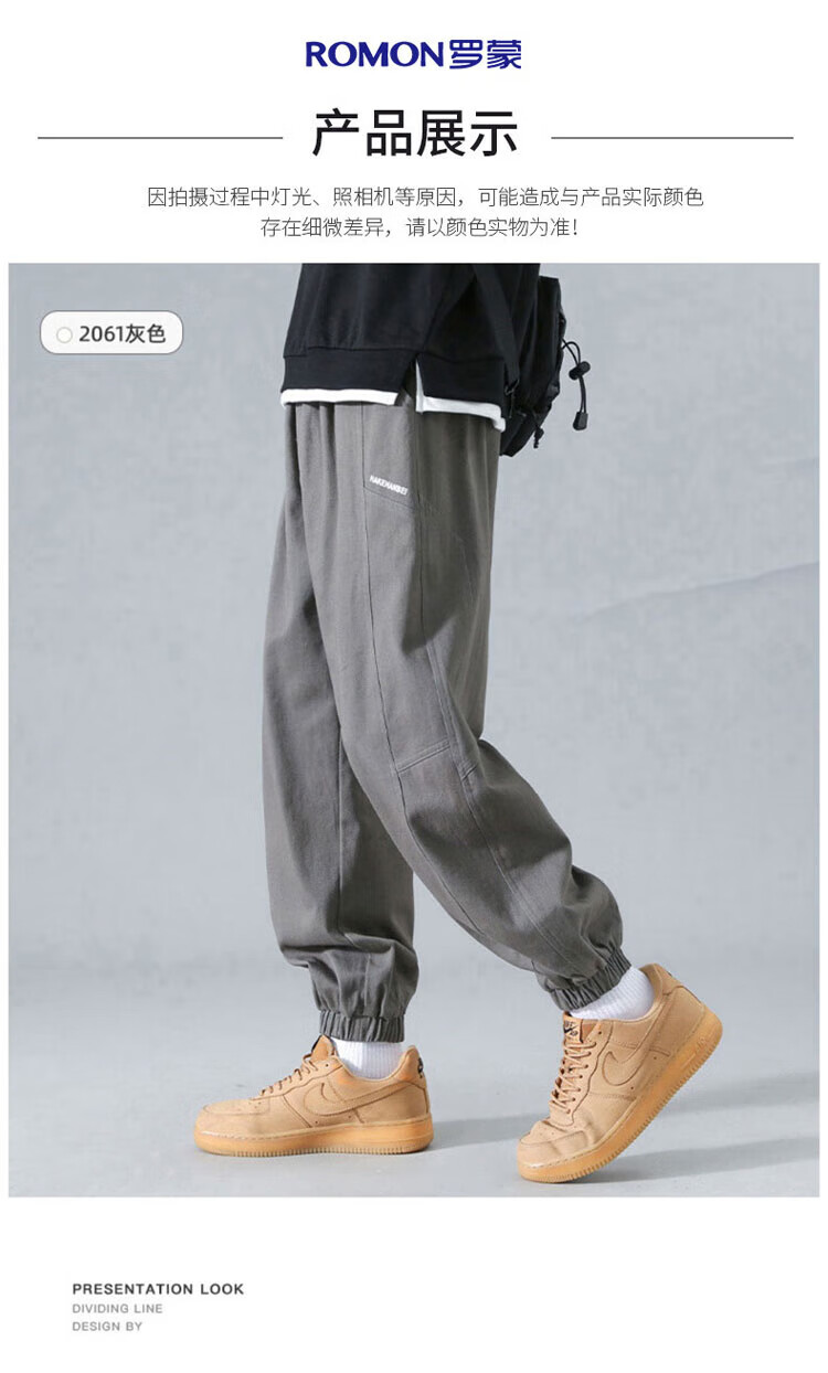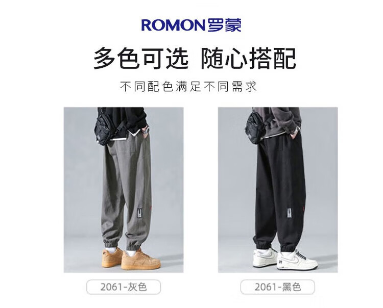 ROMON Casual Pants Men's Autumn and Winter Loose Leg Pants Men's Korean Style Workwear Small Leg Pants Gray XL
