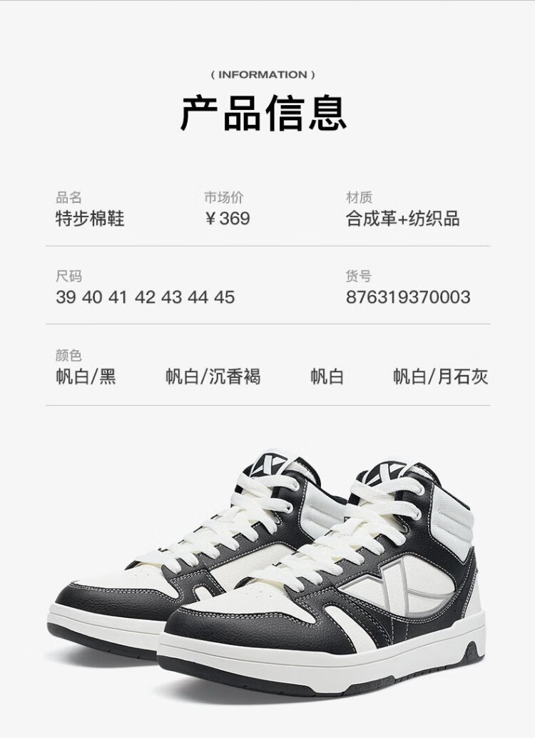 Xtep Men's Shoes Maxx-Lite Outdoor Sports Cotton Shoes Casual Shoes Plus Velvet Warm Winter Cotton Shoes
