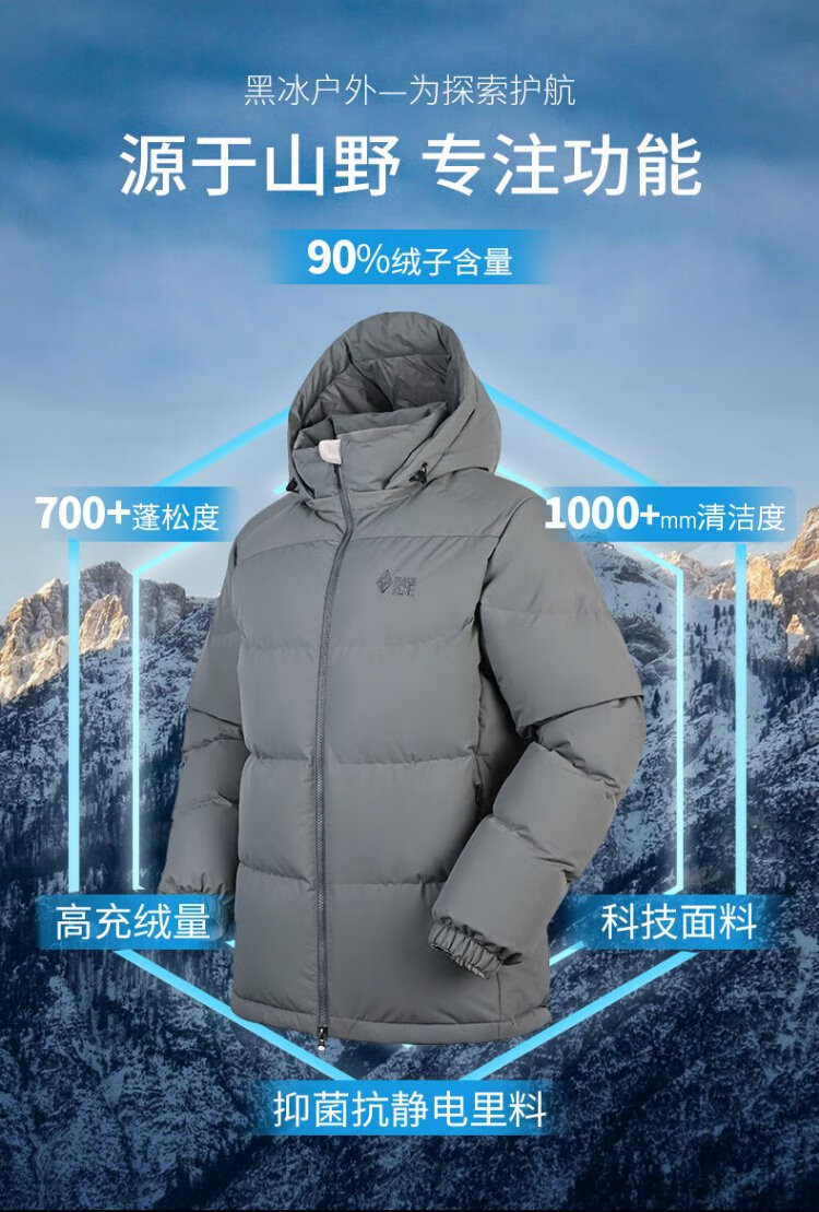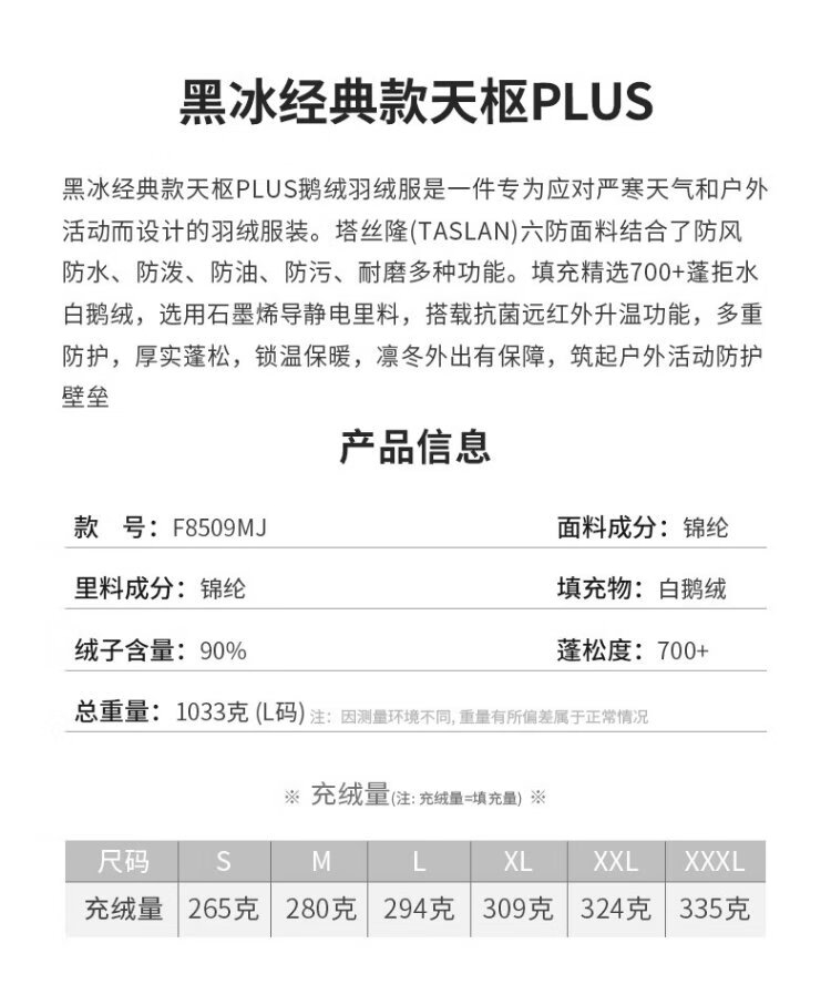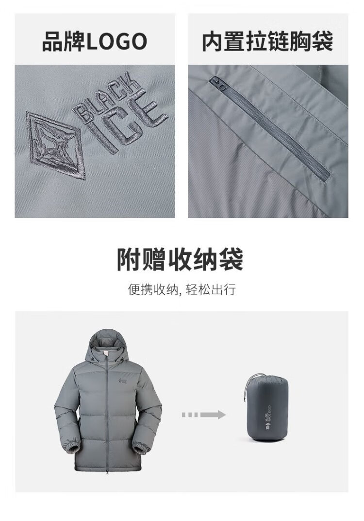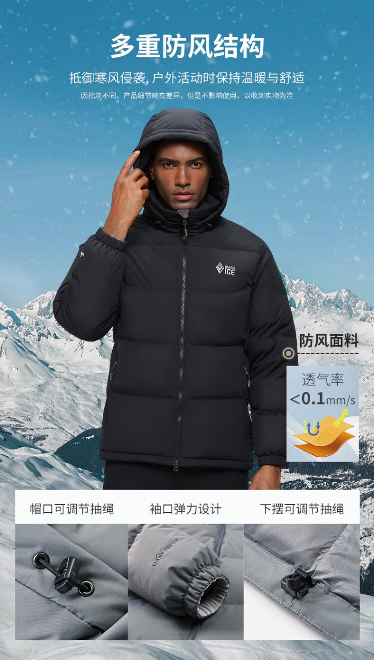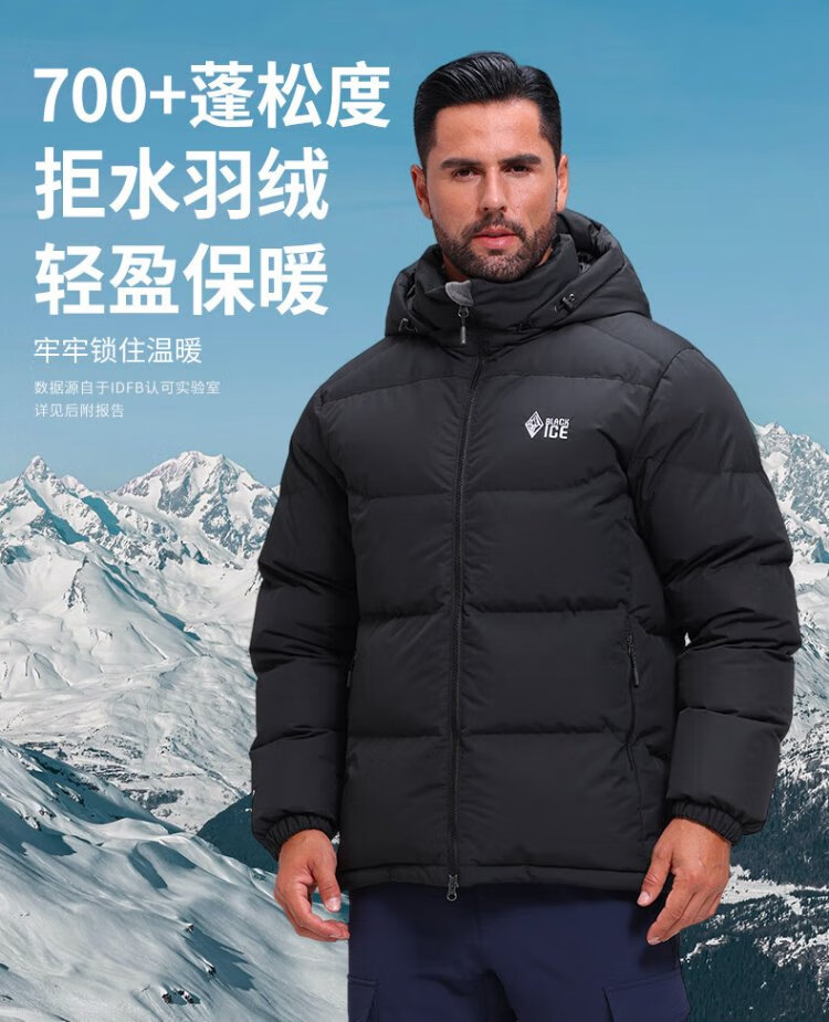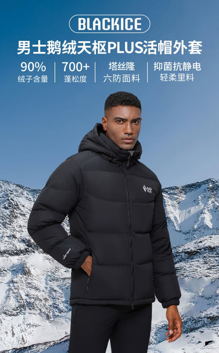 BLACKICE Tianshu PLUS Men's and Women's Light Outdoor Windproof Live Hat Goose Down 700 Puff Down Jacket Classic Black XL