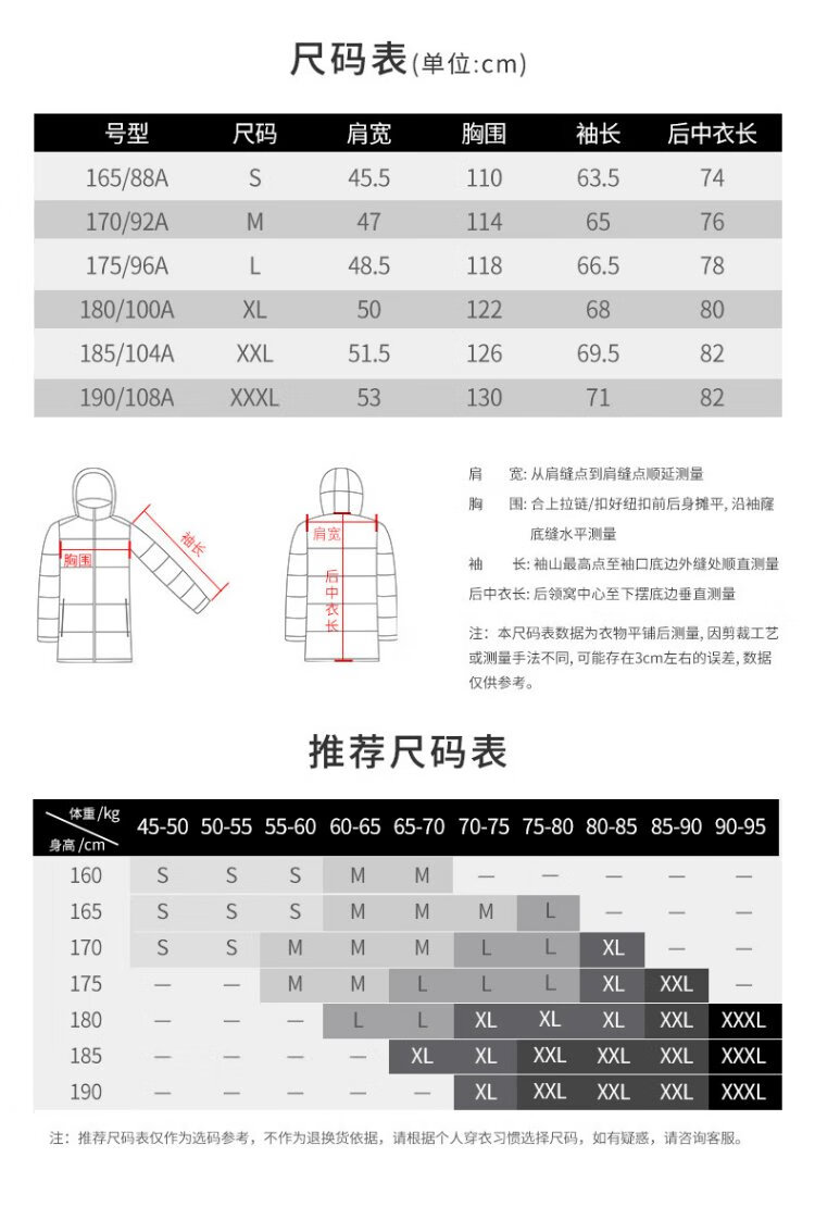 China (cm) 165 / 88-90 170 / 96-98 175 / 108-110 180 / 118-122 185 / 126-130