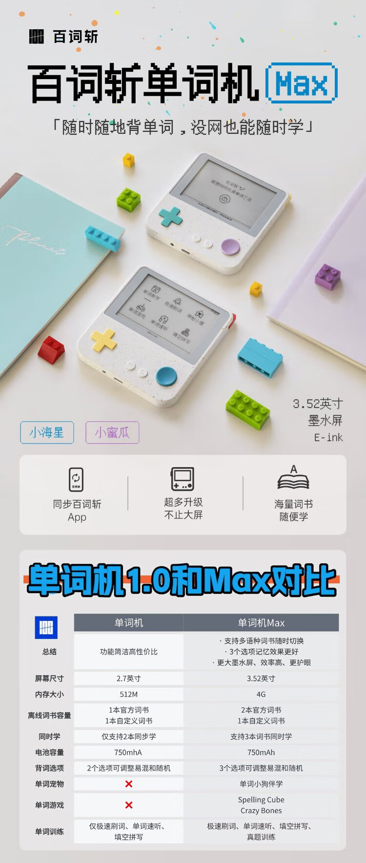 BaiCi word machine Max super large ink screen real-person pronunciation portable synchronized teaching materials for elementary school and college entrance examination vocabulary memorization tool OCC newly upgraded Little Starfish