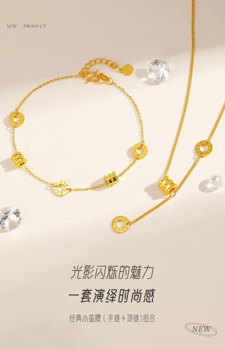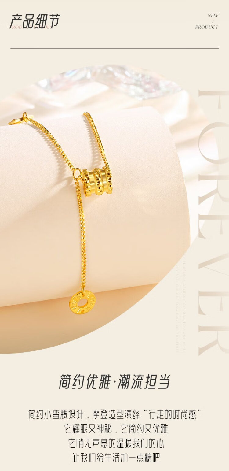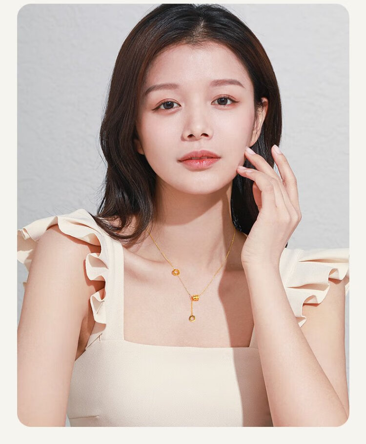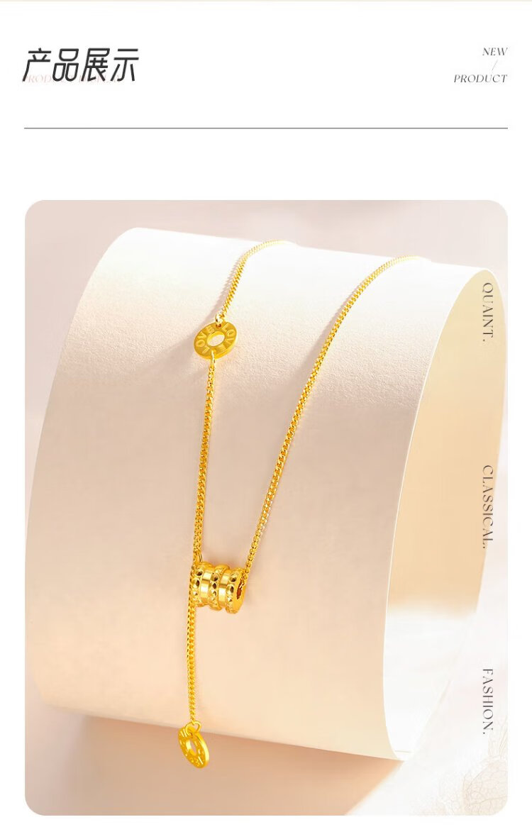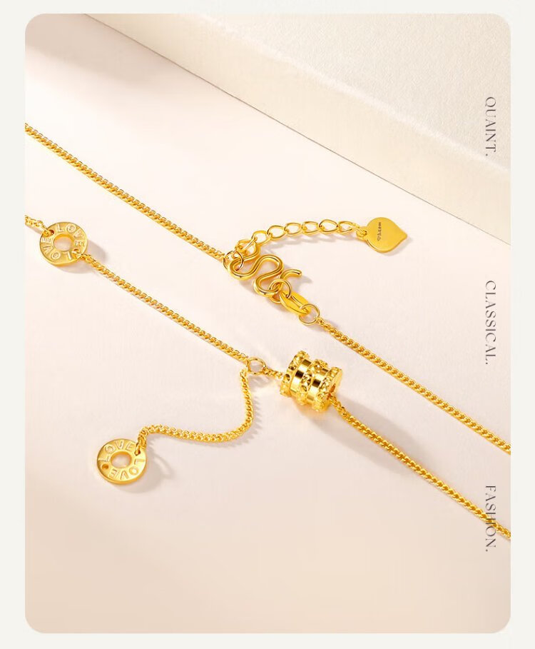Chinese jewelry Chinese Valentine's Day gift gold necklace women's 999 pure gold small waist pendant plain chain for girlfriend and wife