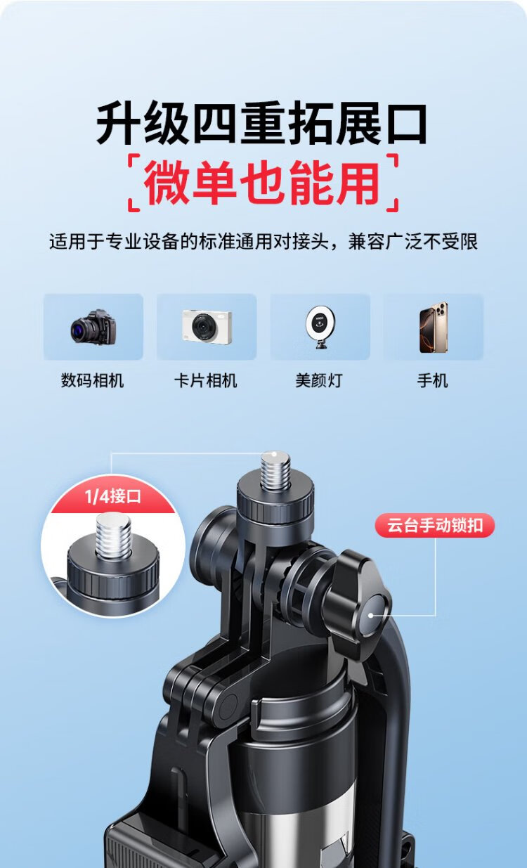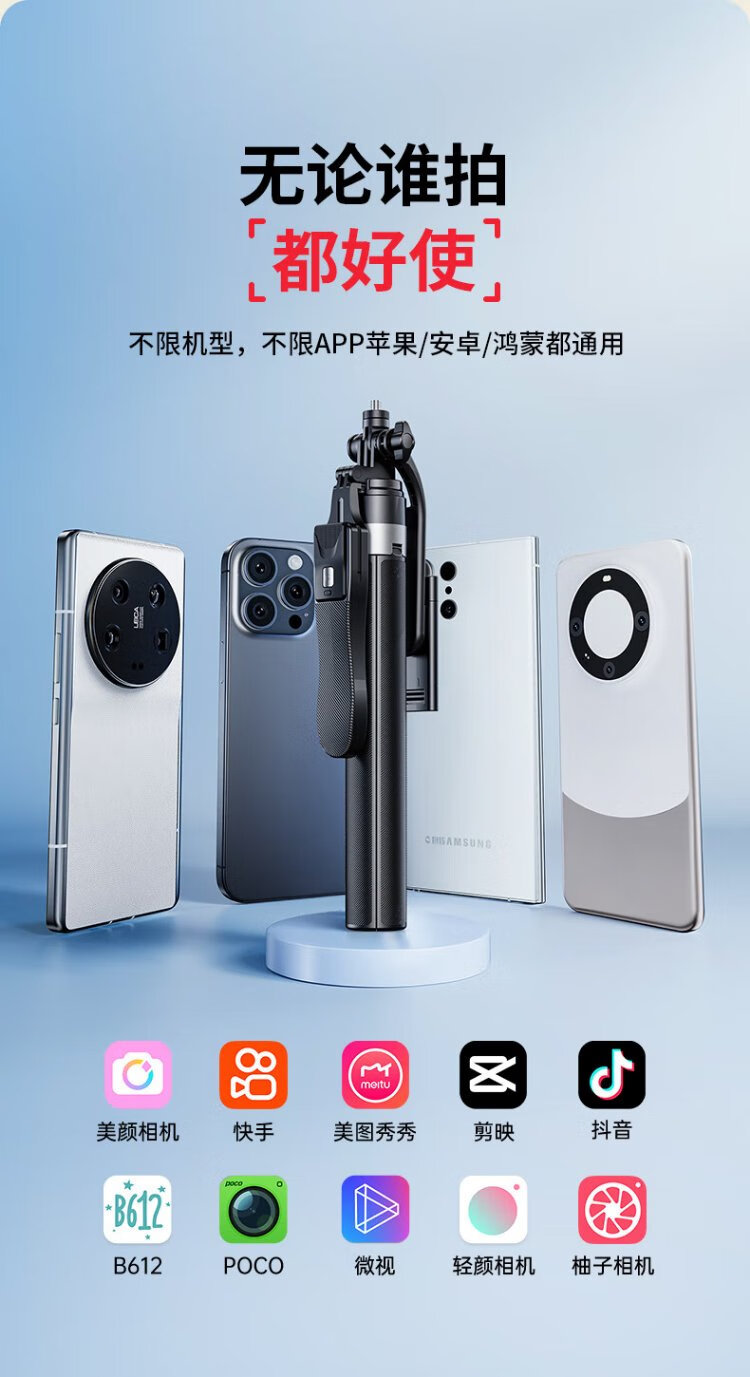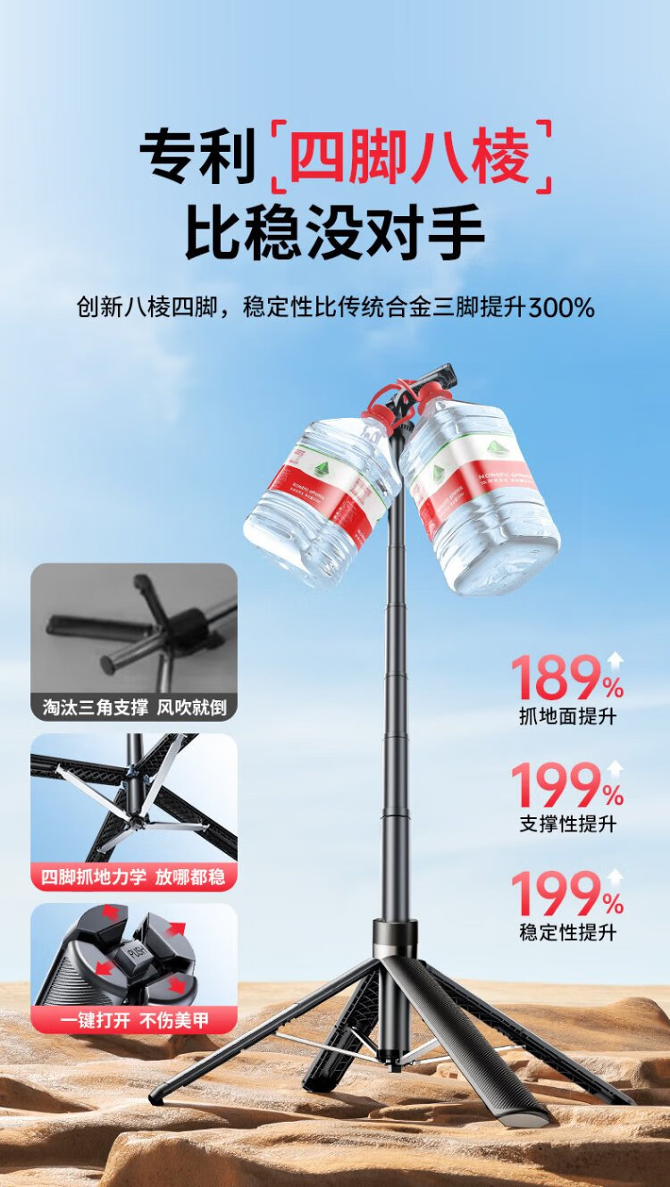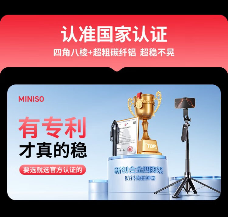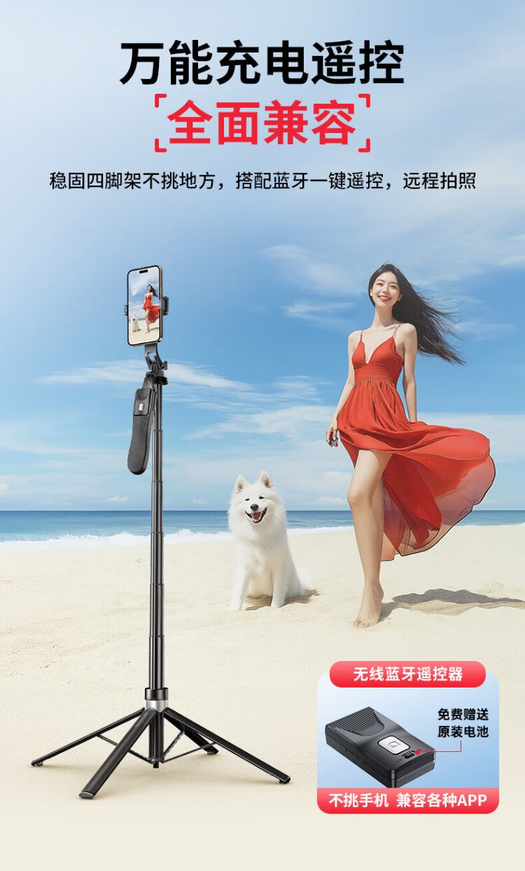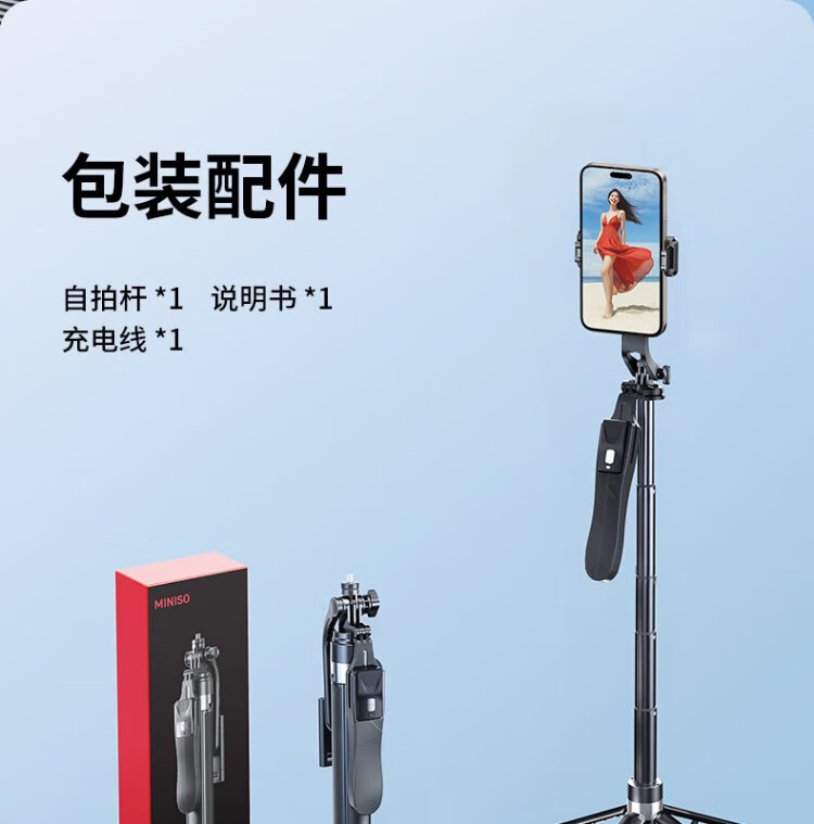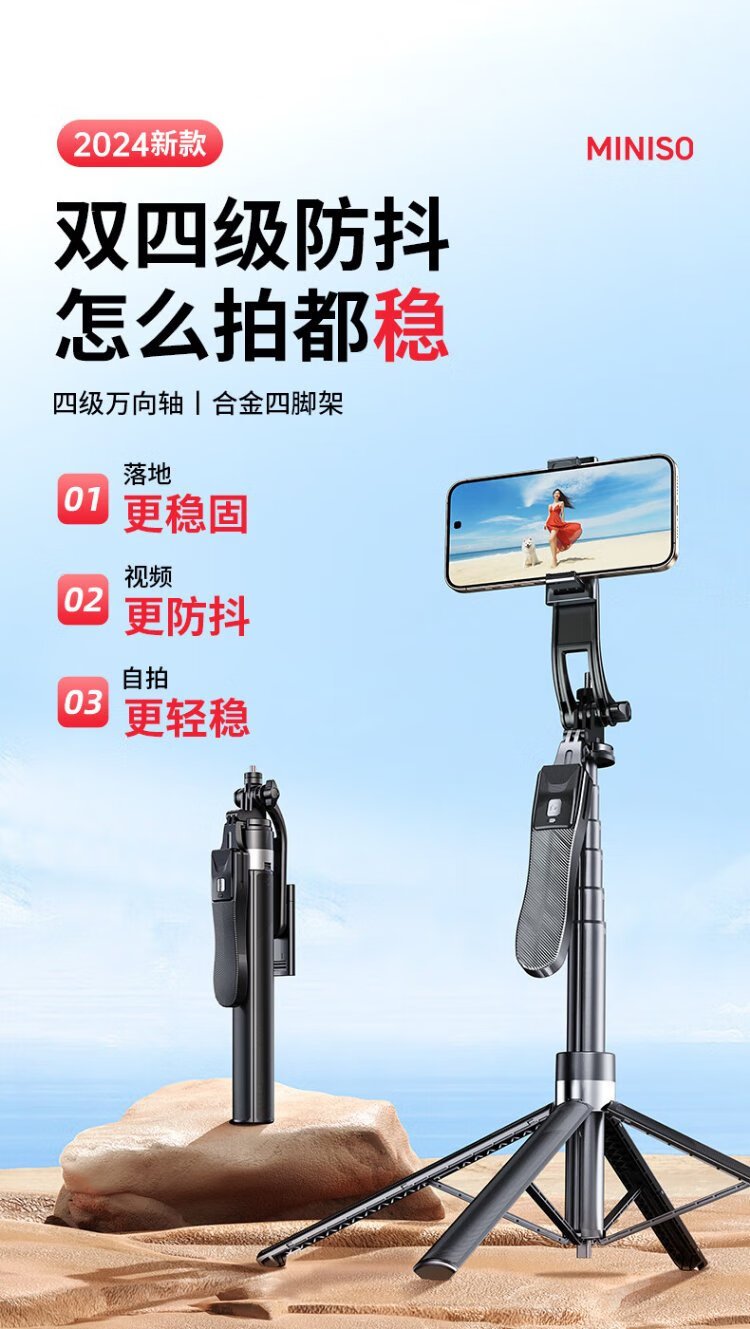 MINISO 25-year-old new selfie stick tripod travel live broadcast mobile phone holder selfie artifact 360 rotating fully automatic multi-functional floor-standing telescopic portable pan/tilt remote control