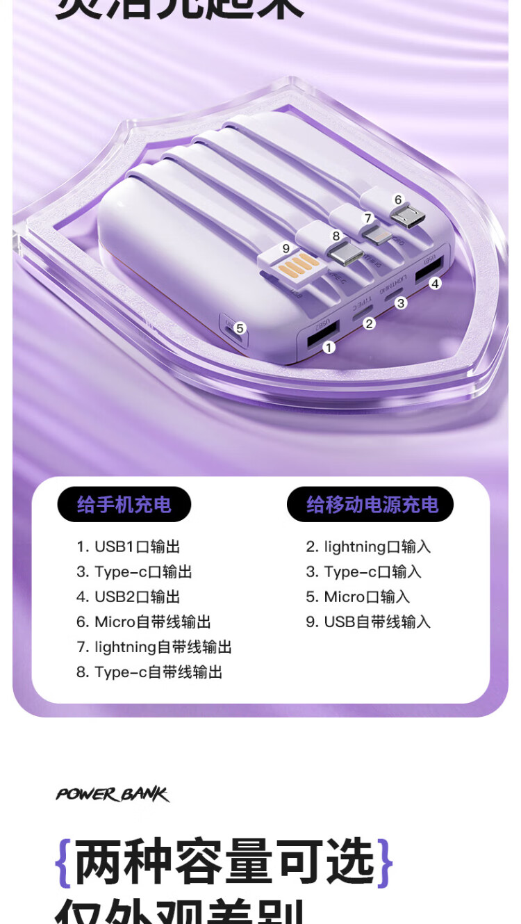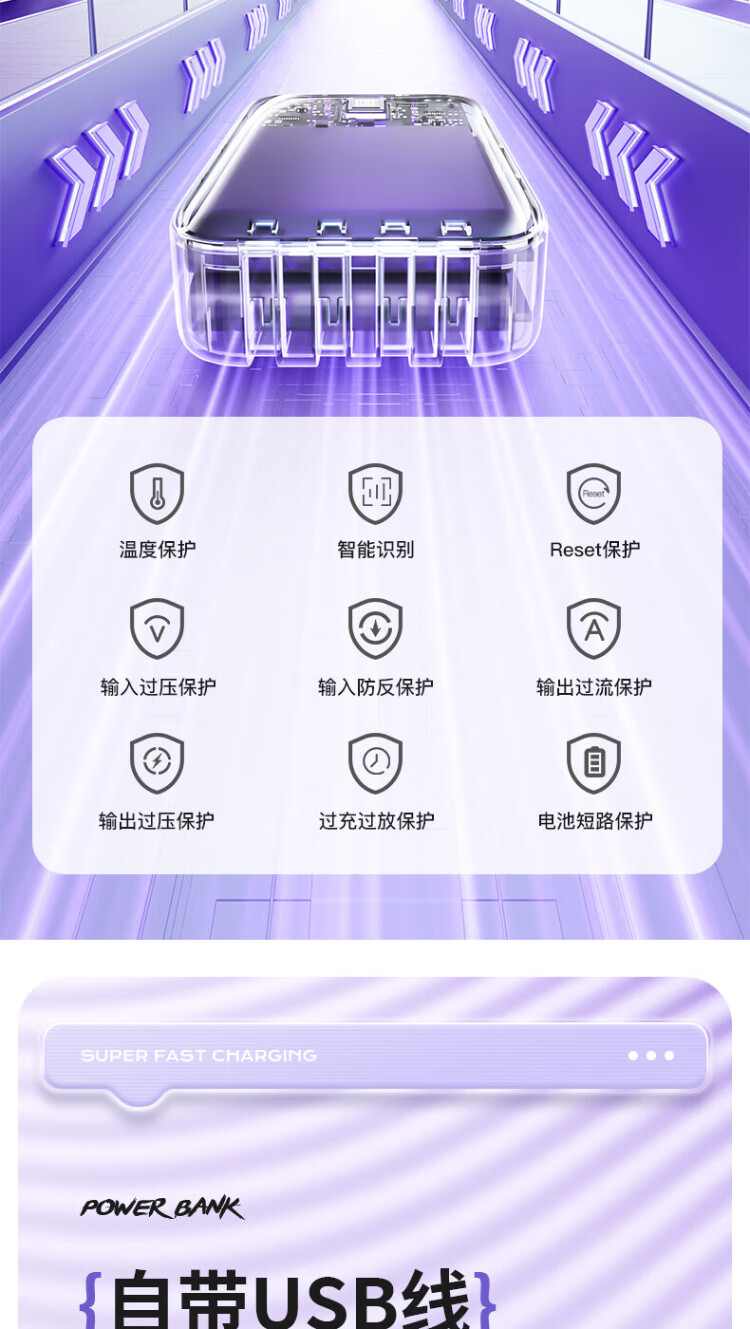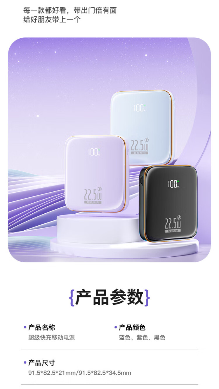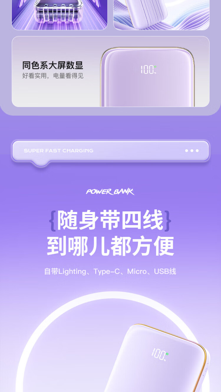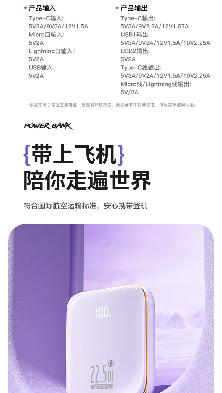 Zalo 3C certification丨22.5W super fast charging power bank 20000 mAh, comes with cable, large capacity, can be used on airplanes, suitable for Huawei and Apple PD18/20W mobile power supply