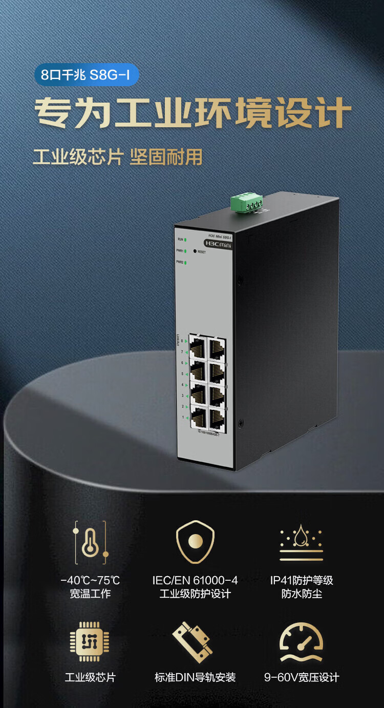 New H3C (H3C) Mini S8G-I 8-port industrial grade switch Gigabit rail type supports lightning protection plug and play splitter network monitoring splitter