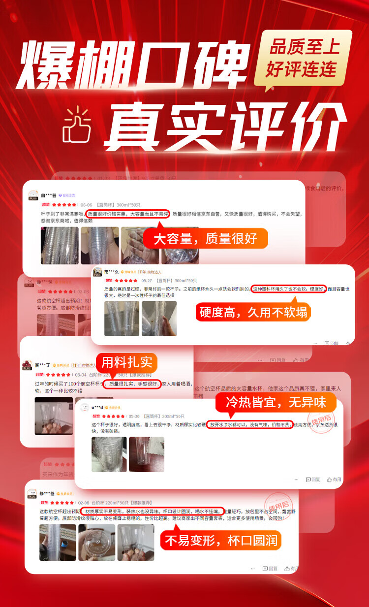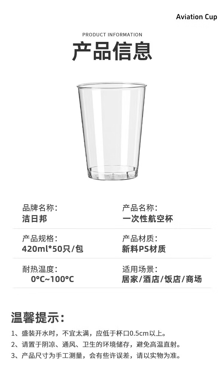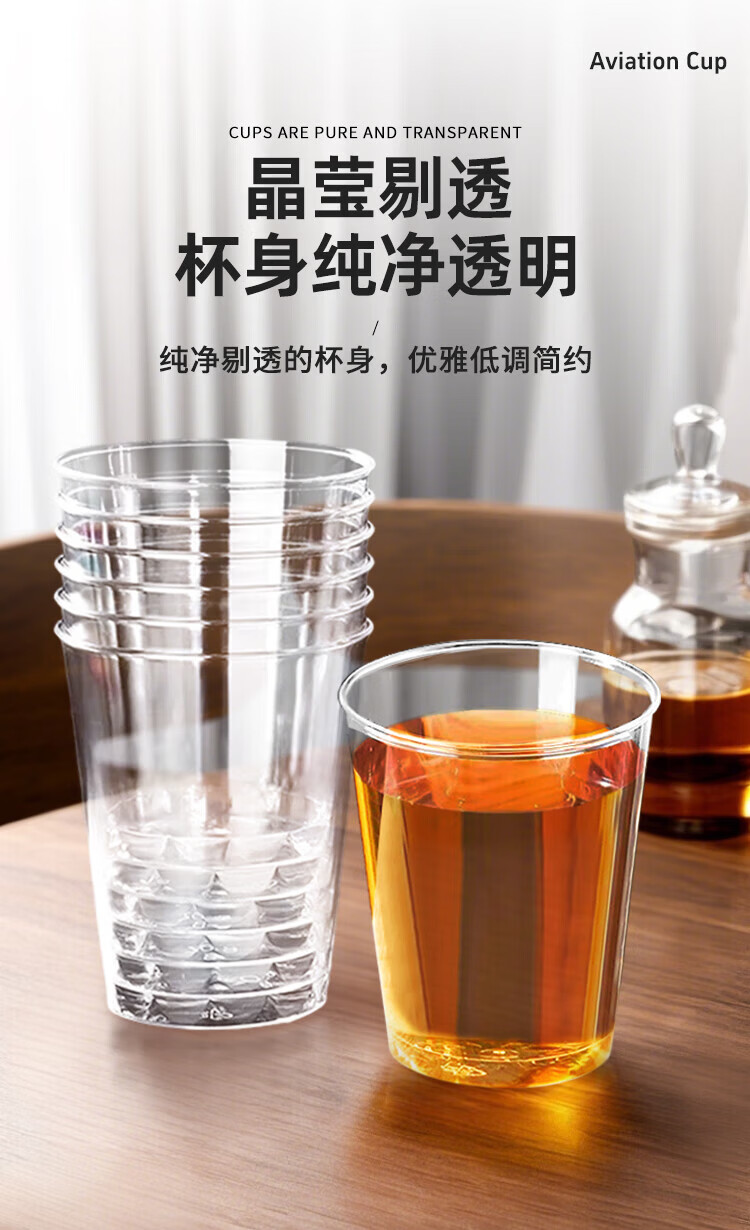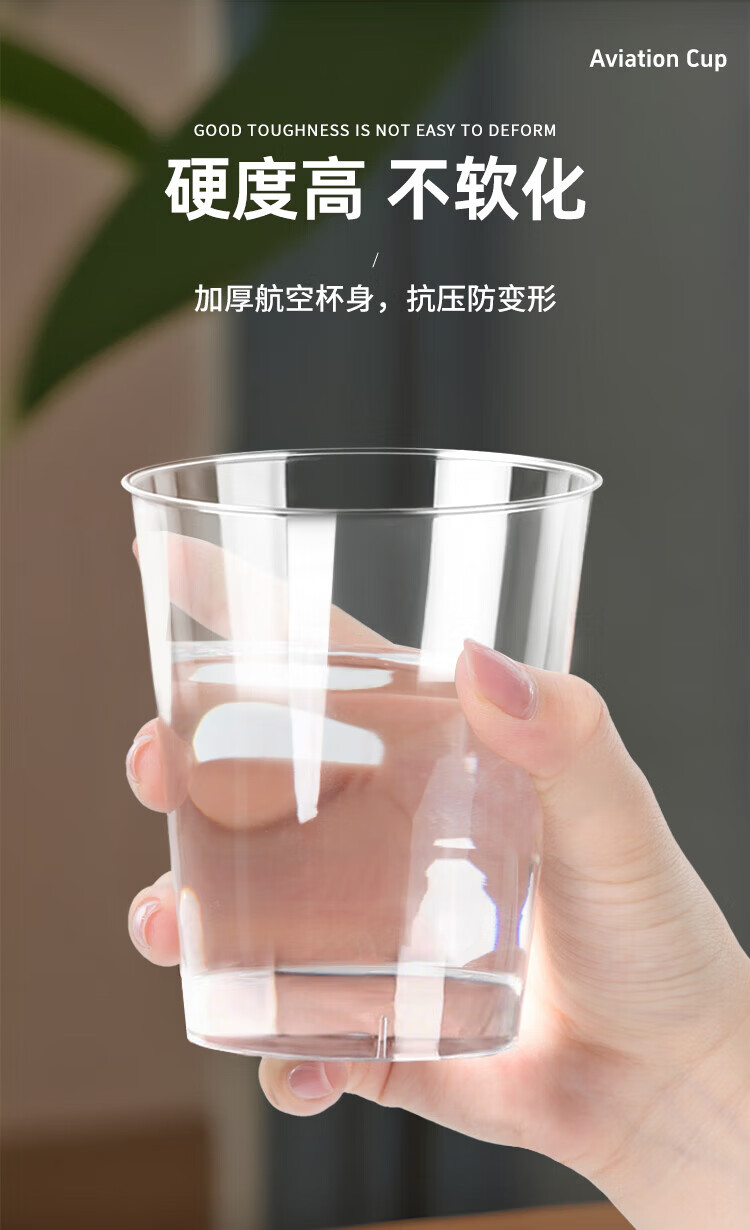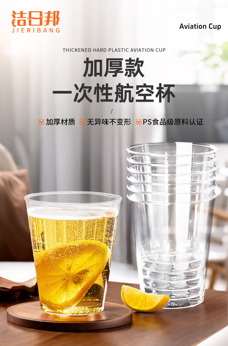 Jielibang Aviation Cup Disposable 420ml*50 Food Grade Transparent Plastic Thickened Home Picnic Beer Drink Space