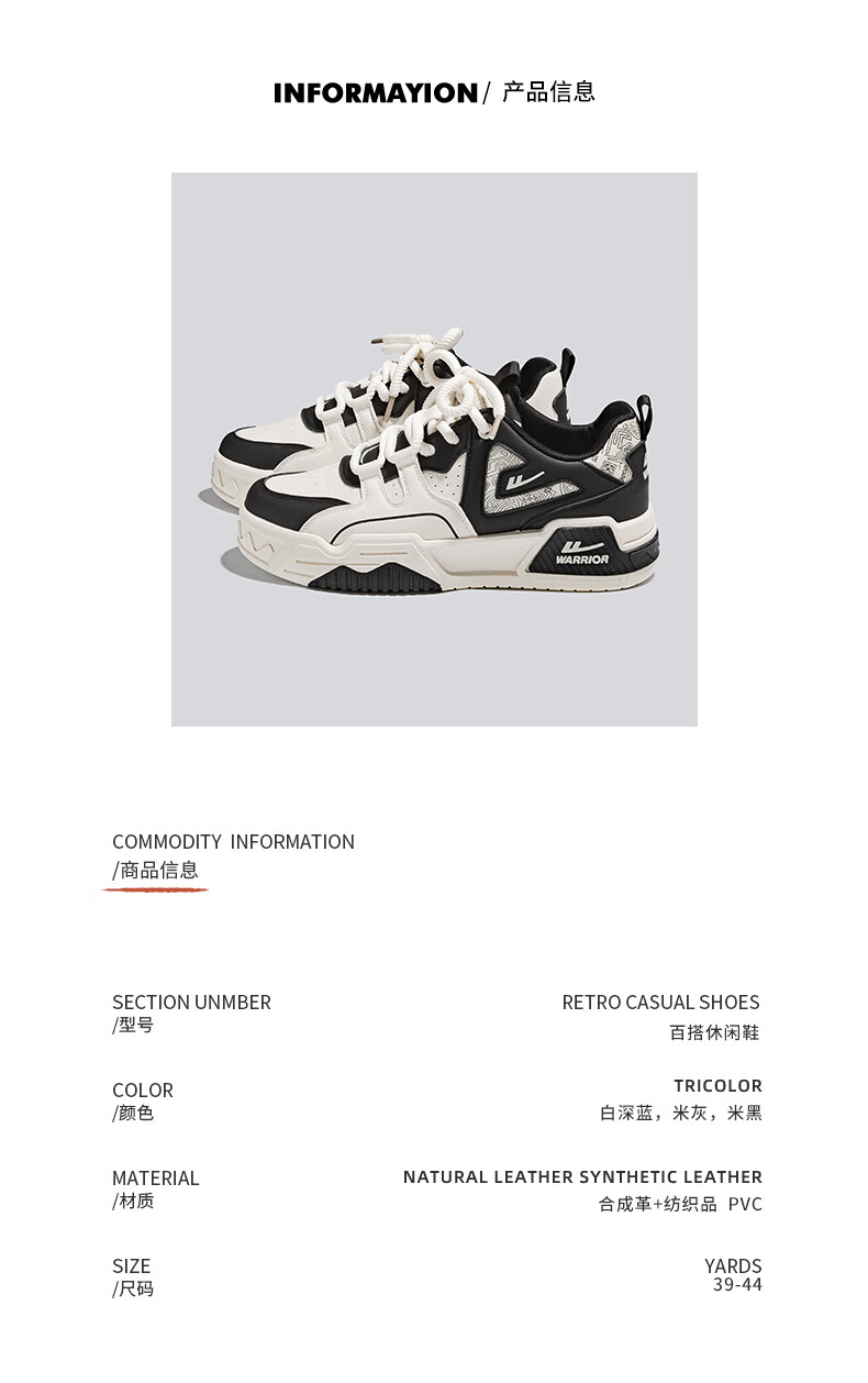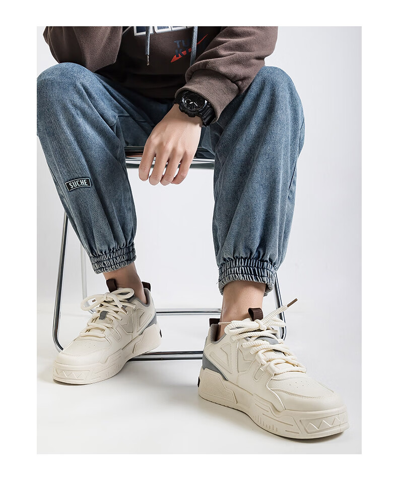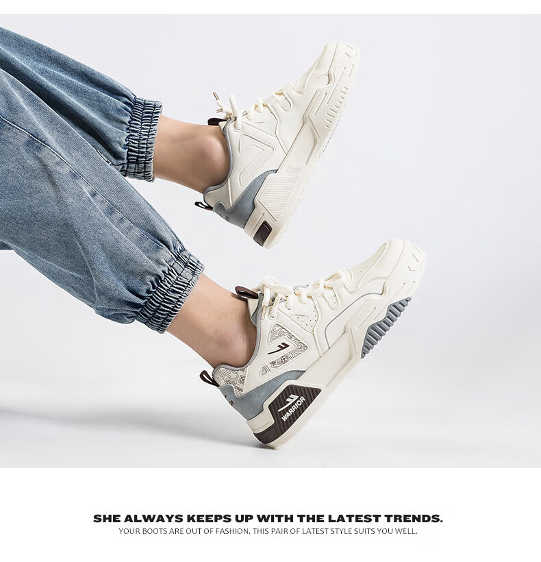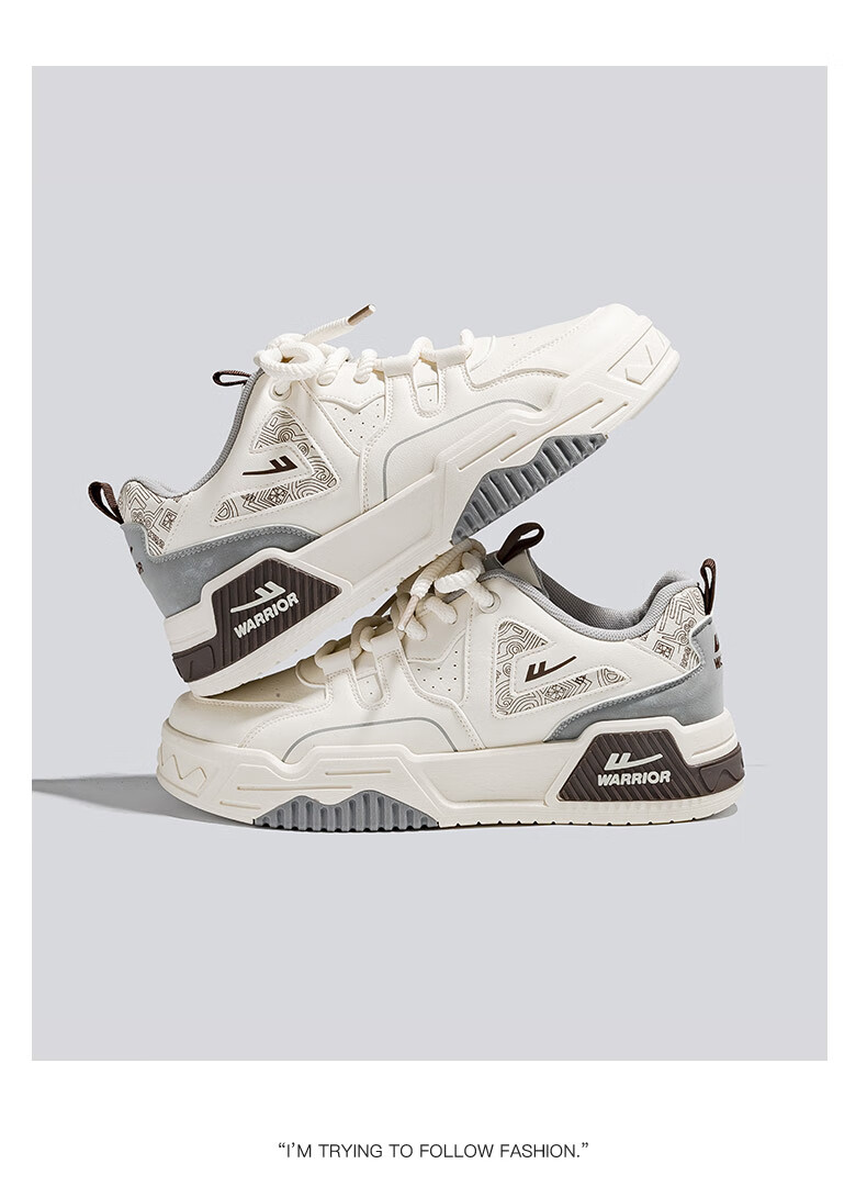 Warrior official men's shoes autumn and winter leather panel shoes men's casual sports shoes men's thick sole versatile white shoes men's beige 42