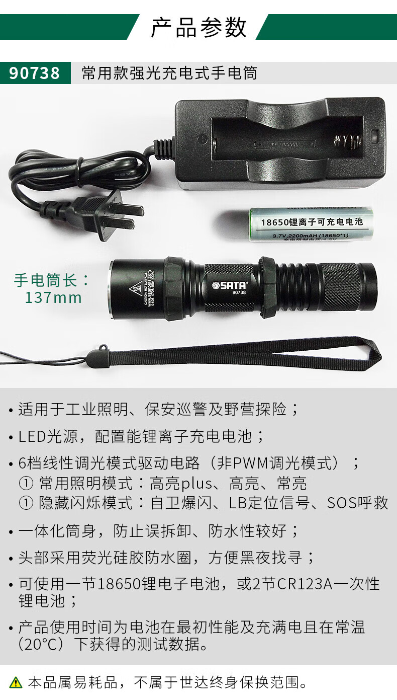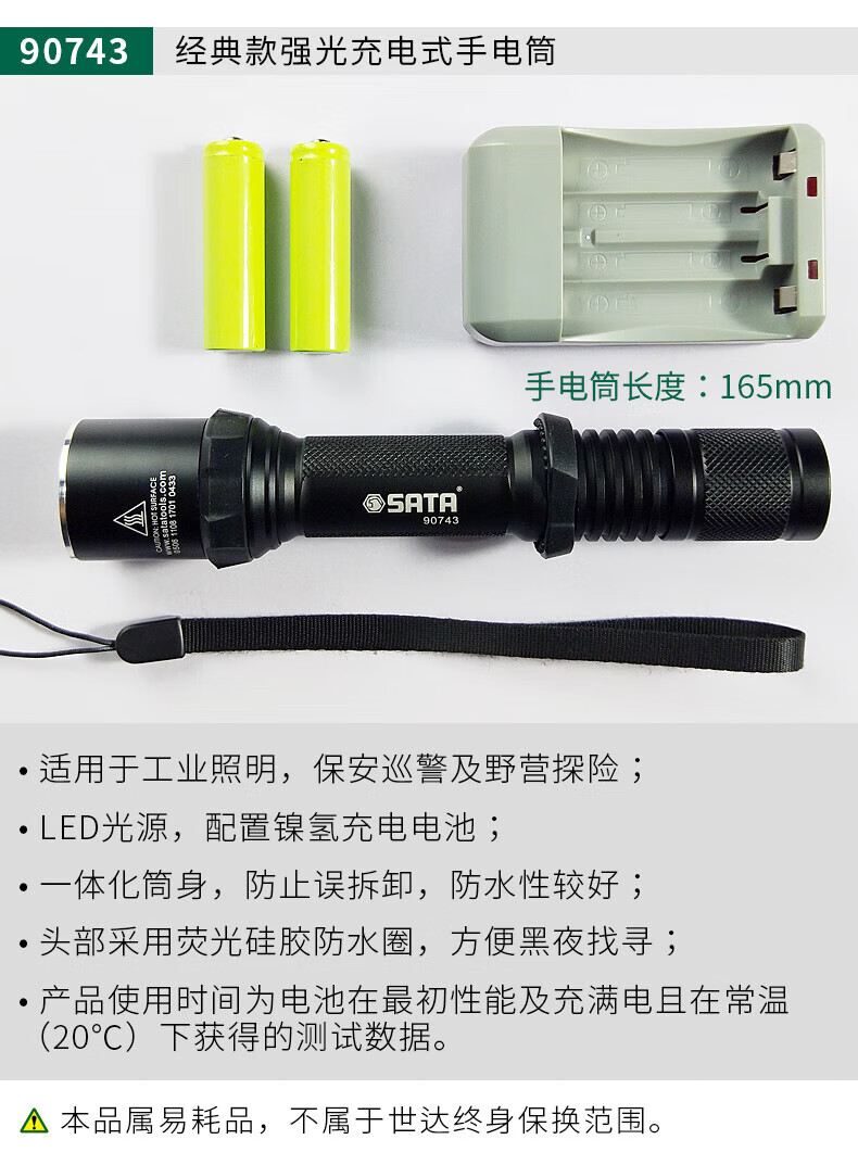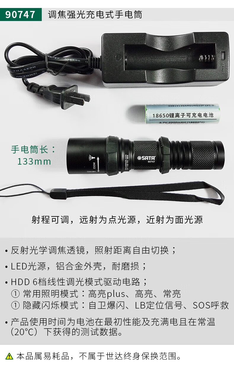 SATA high-performance miniature bright rechargeable flashlight 450LM 90746