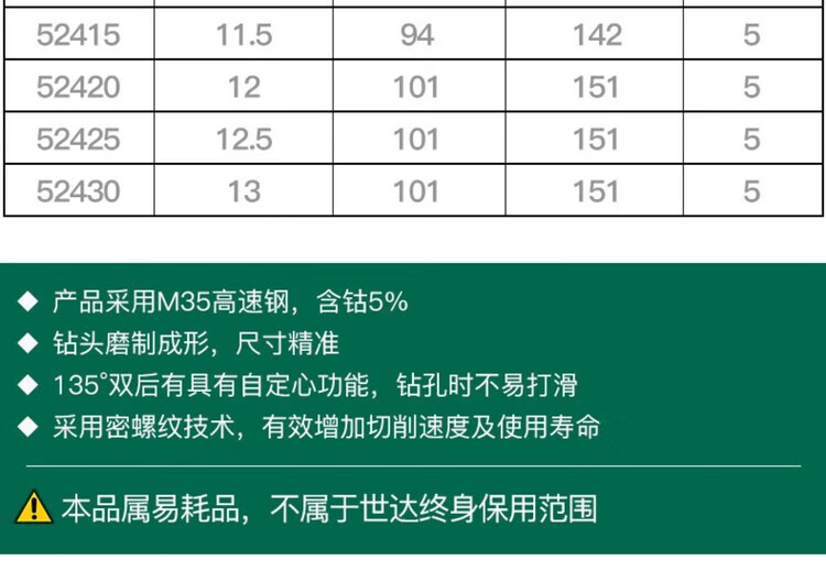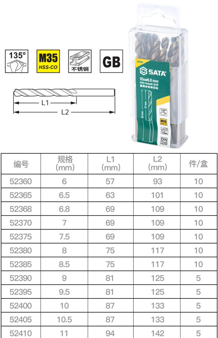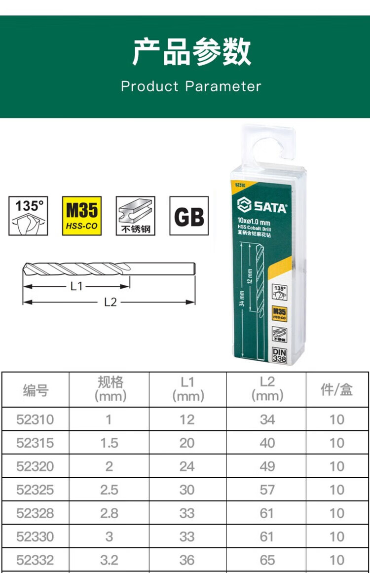 SATA 10-piece set of straight shank cobalt twist drills 4.2 MM 52342