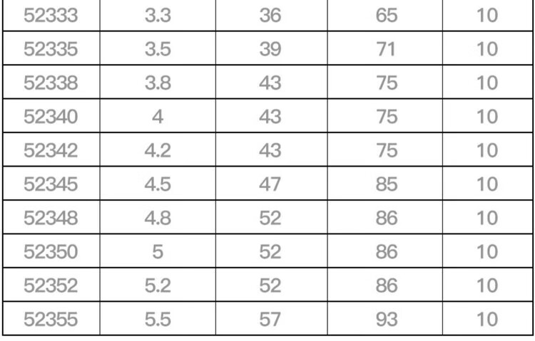76.2 81.3 86.4 91.5 96.5 101.6 106.7 112 117 122 127 132 137 142