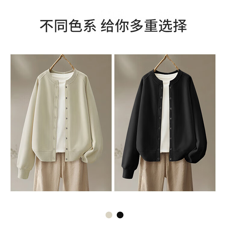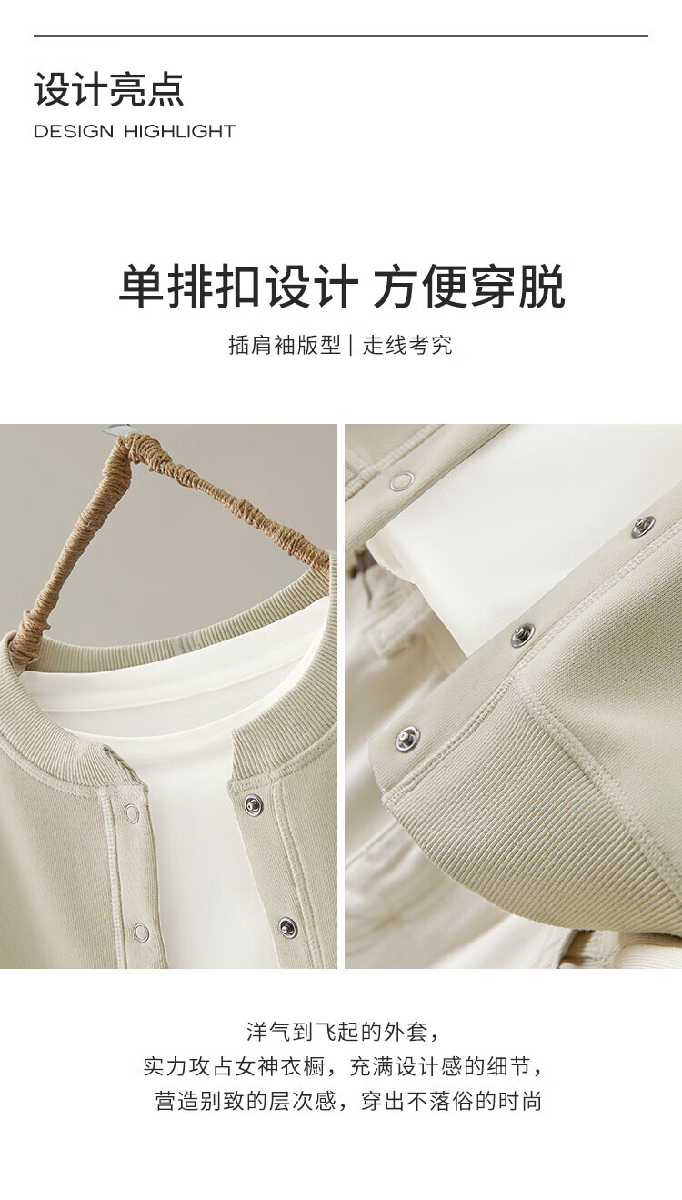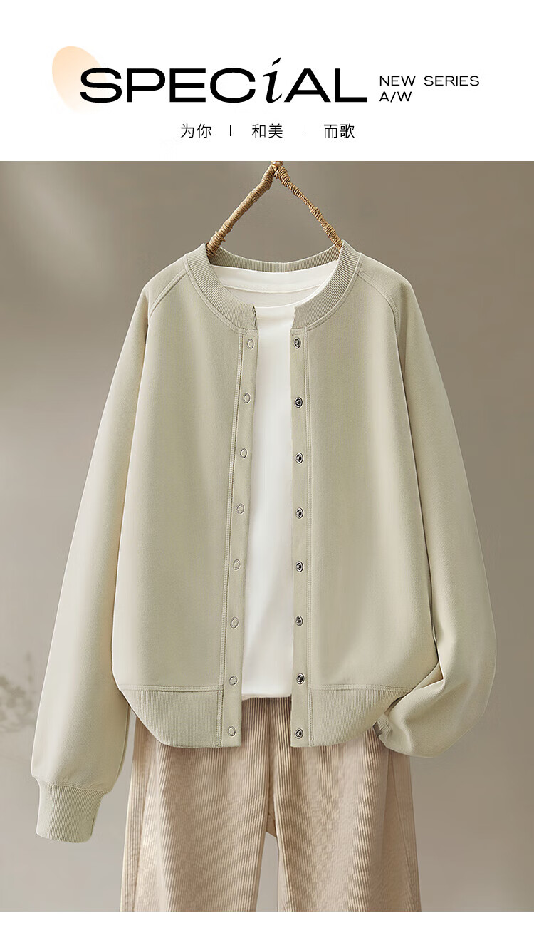 Sibaishe round neck loose baseball jacket for women 2025 autumn new style simple fashion solid color single breasted jacket