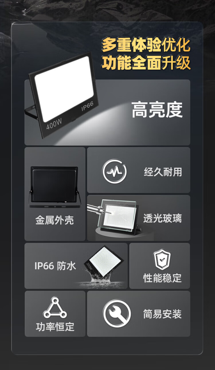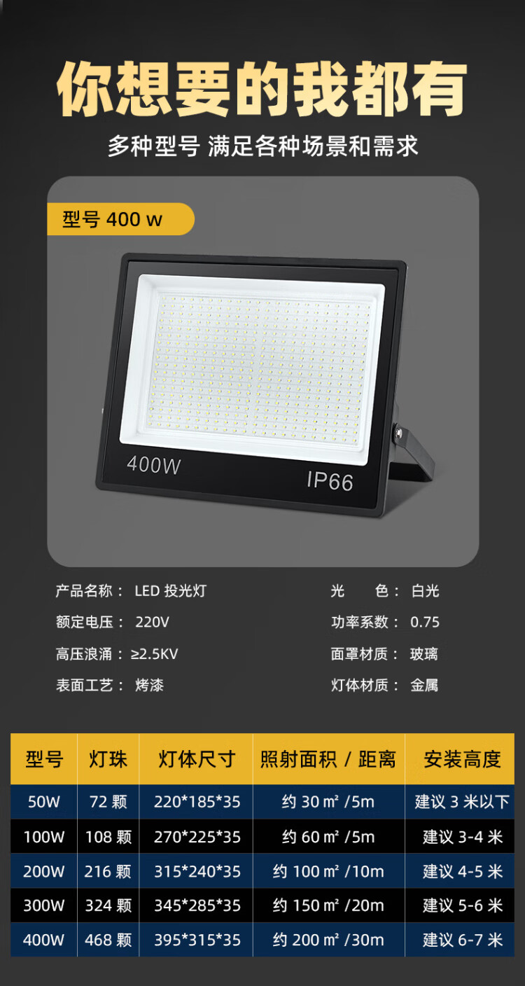 Deyan led floodlight outdoor lighting waterproof outdoor spotlight industrial lighting high power factory street light 300W-white light high brightness model