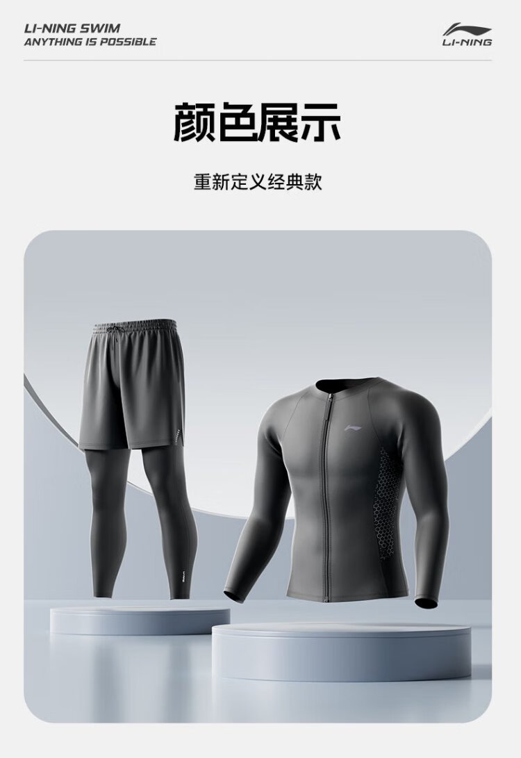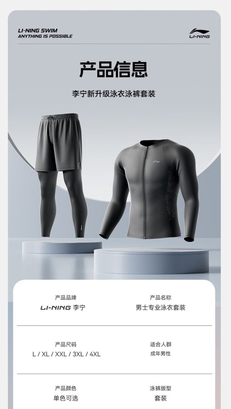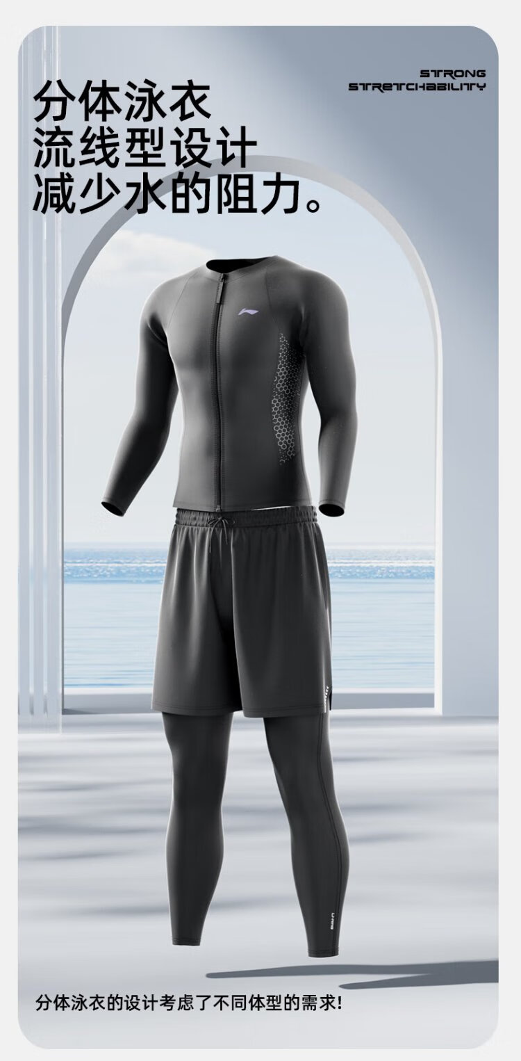 Li Ning (LI-NING) swimsuit men's long-sleeved split swimsuit anti-embarrassing hot spring surfing suit swimming trunks swimsuit set 8407 L