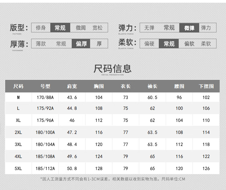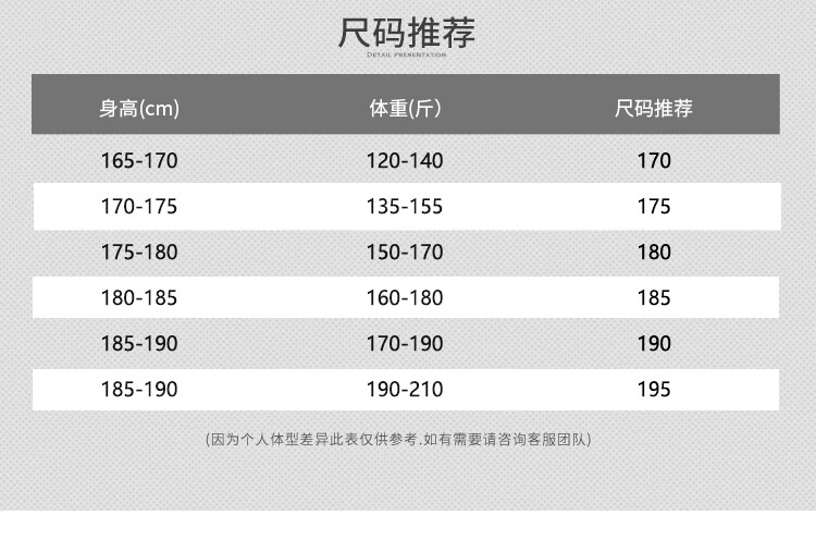 China (cm) 165 / 88-90 170 / 96-98 175 / 108-110 180 / 118-122 185 / 126-130