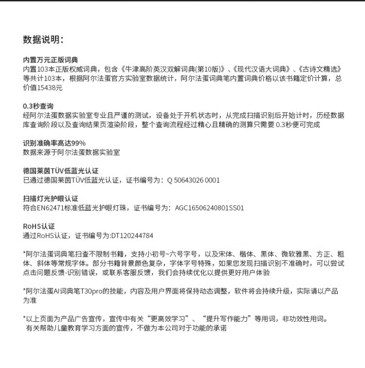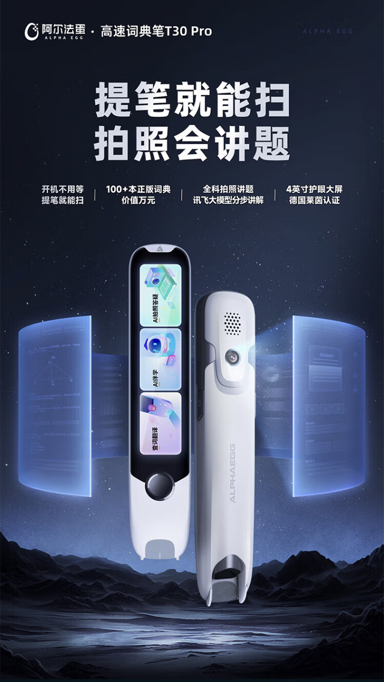 Alpha Egg Dictionary Pen T30Pro National Subsidy English Reading Pen Translation Pen Primary School High School Synchronous General Scanning Pen Photo Search Question Electronic Dictionary Word Pen
