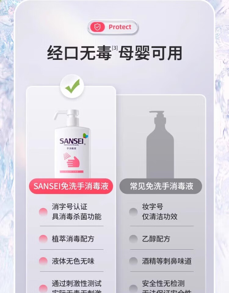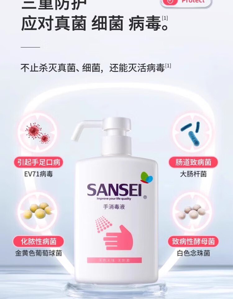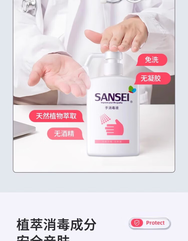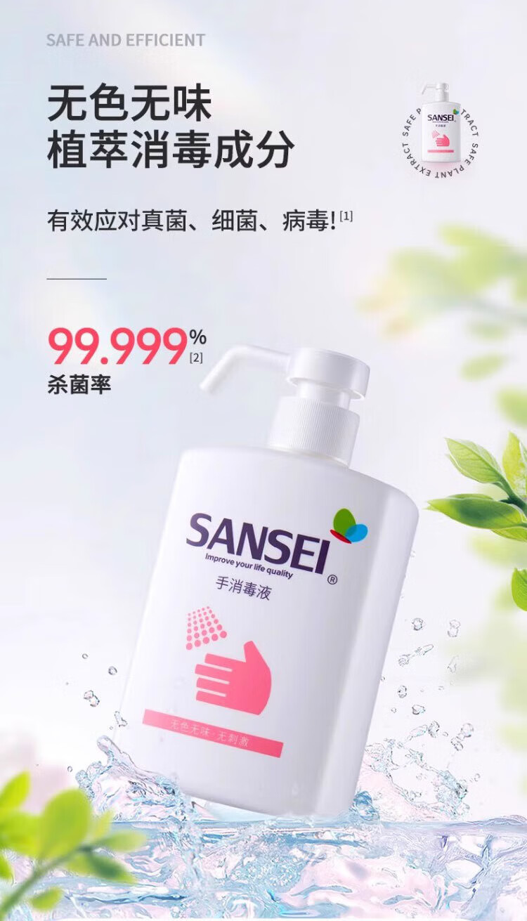 Sansei hand sanitizer no-wash hand sanitizer 500ml baby children school student kindergarten household sterilization and disinfection water