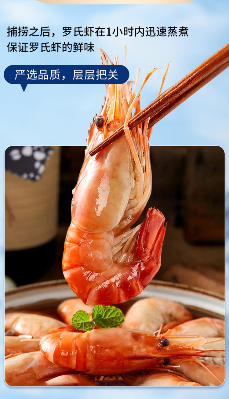 Fishing Travel Notes Domestic Macrobrachium rosenbergii net weight 750g 46-60 fresh cooked frozen freshwater shrimp big head shrimp 31-40Specifications