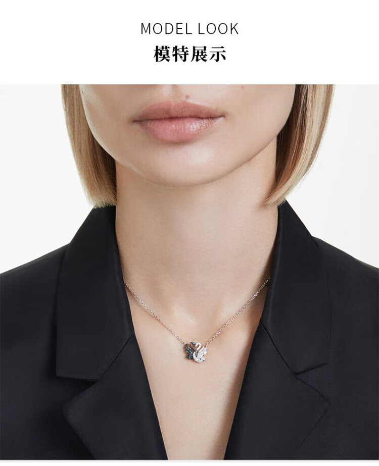Swarovski (SWAROVSKI) SWAN black and white two-color swan Shijia hugging goose necklace girl birthday gift