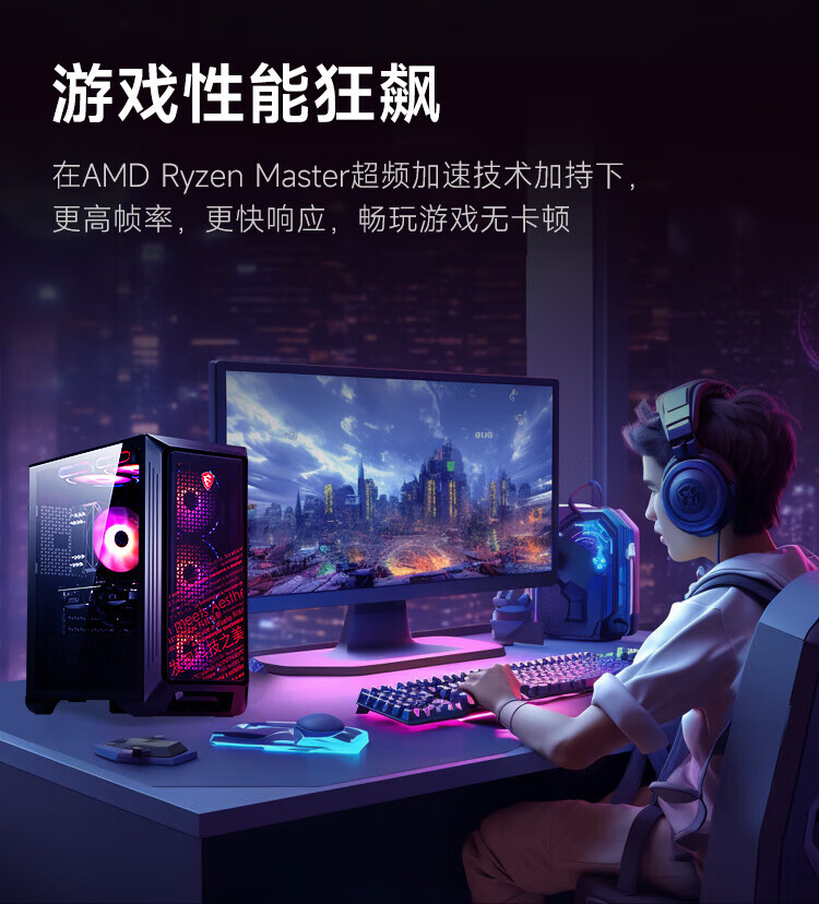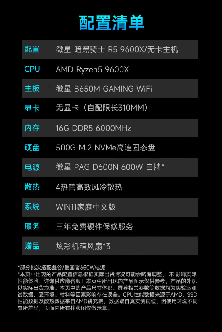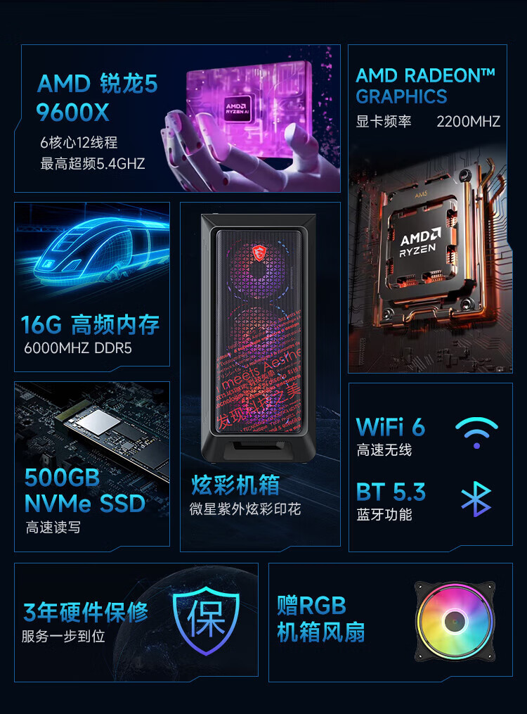 AMD&MSI Dark Knight National Subsidy 20% Ryzen R5 9600X/16G/500G SSD/600W E-sports Game Designer Desktop Computer Cardless Host