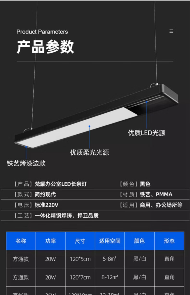 Fanyao LED square light, long pendant light, fluorescent lamp office ceiling installation, special commercial chandelier for supermarket office building