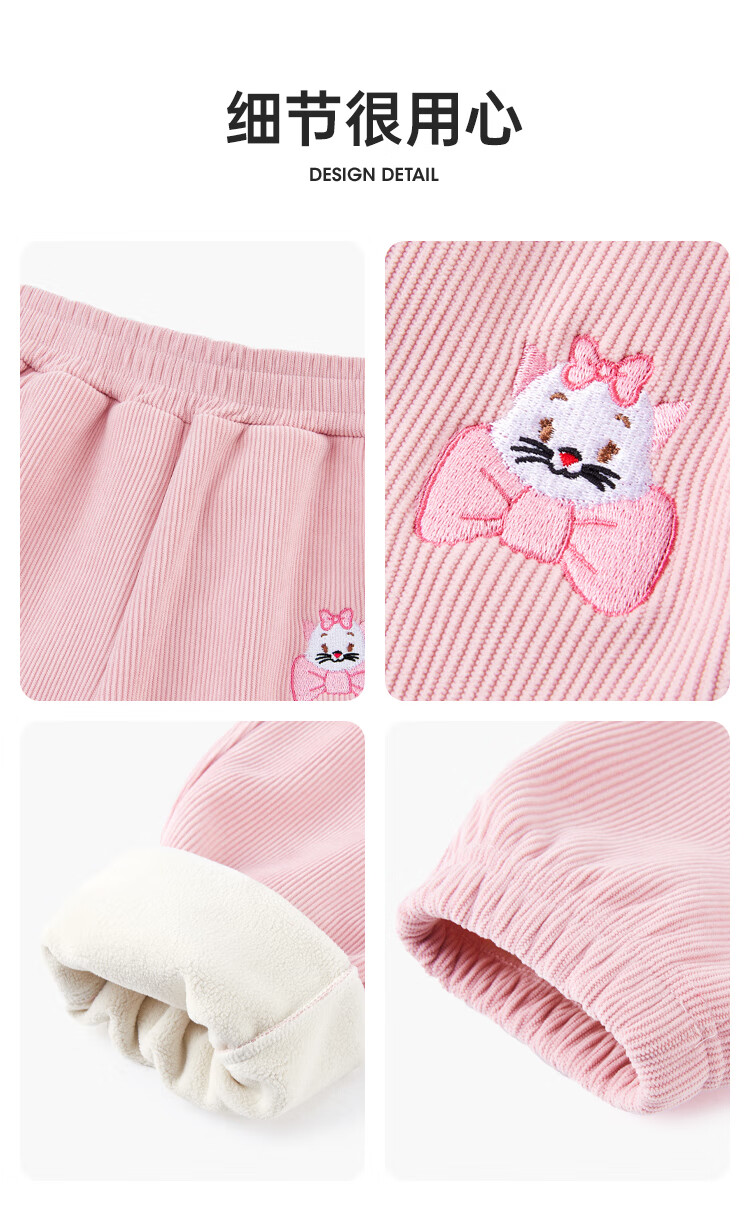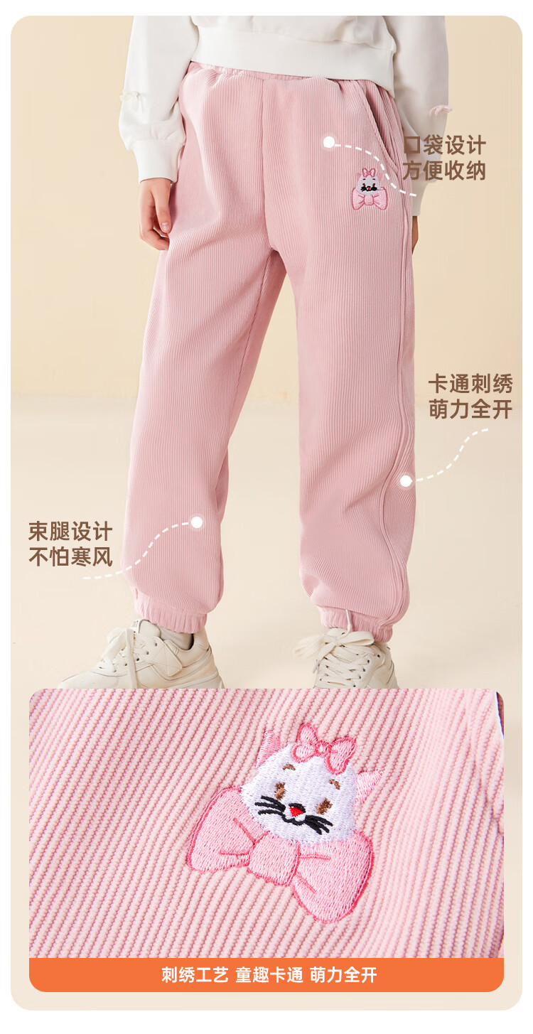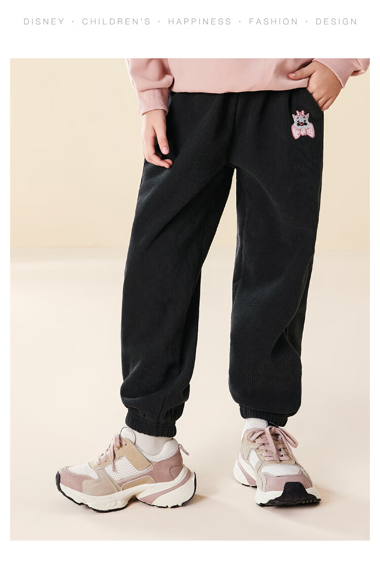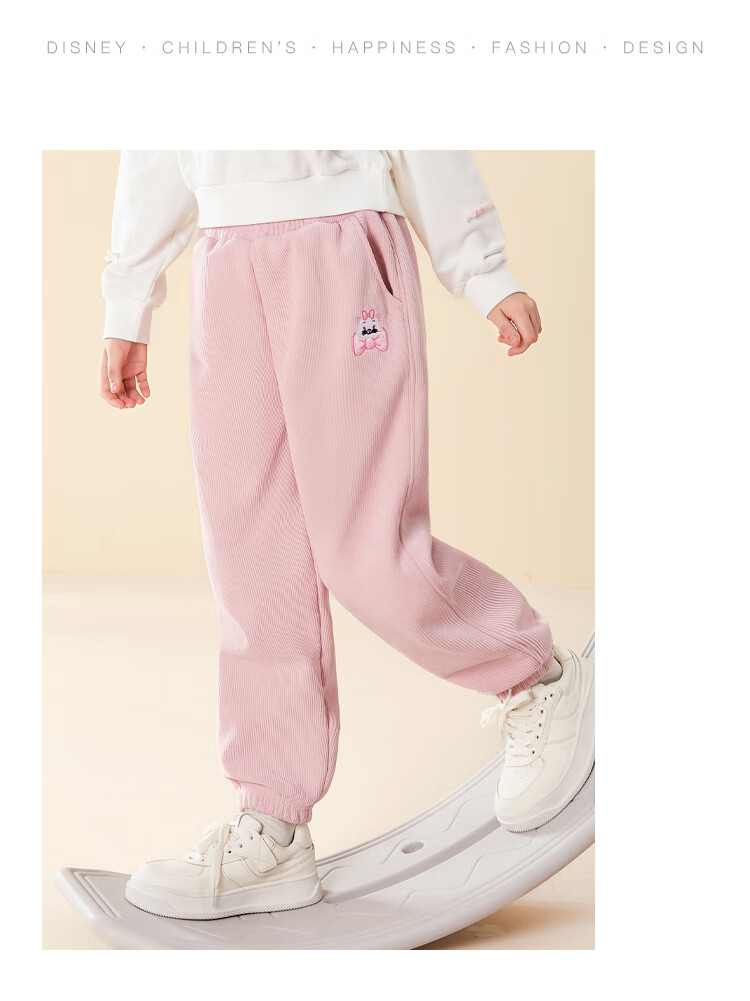 Disney Girls' Velvet Pants Winter Children's Sports Pants Autumn and Winter Corduroy Casual Pants SS98424-G Pink