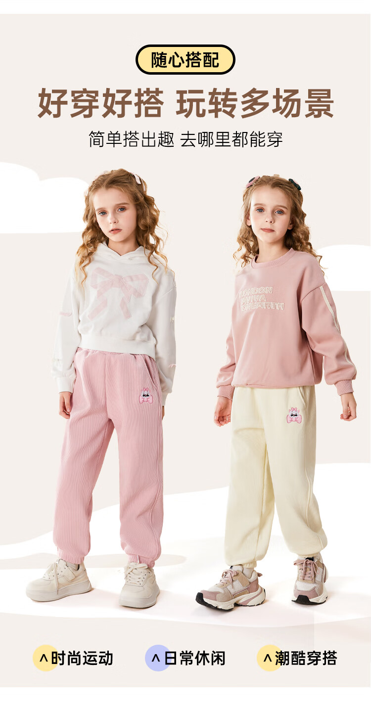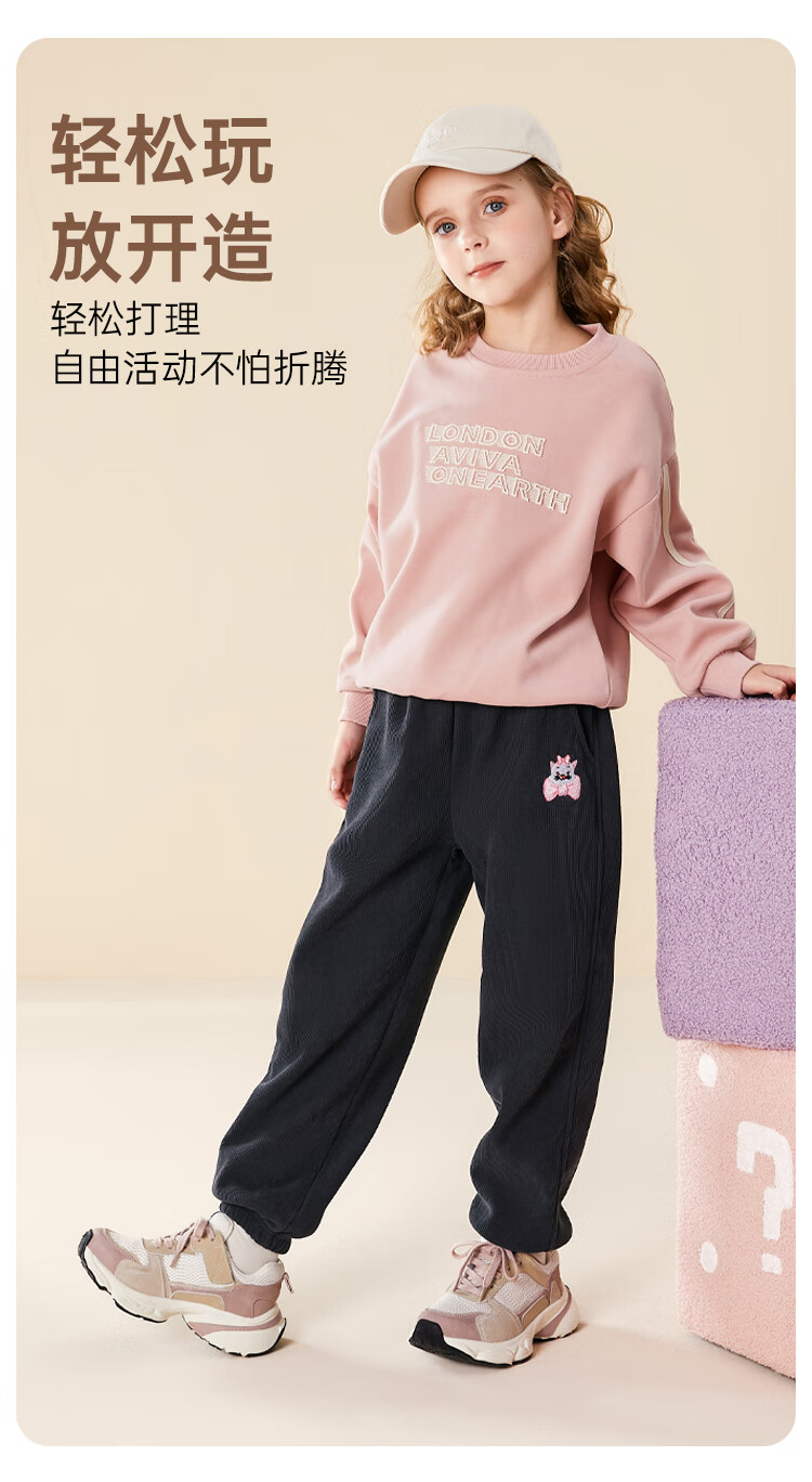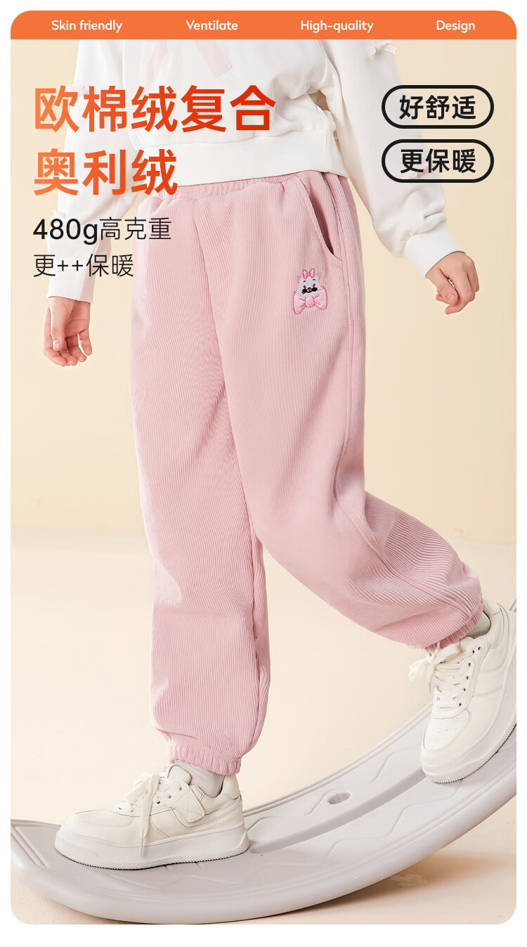 Disney Girls' Velvet Pants Winter Children's Sports Pants Autumn and Winter Corduroy Casual Pants SS98424-G Pink