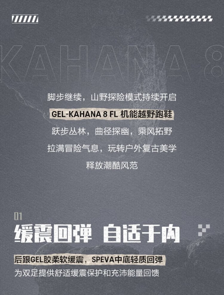 ASICS men's wear-resistant and breathable running shoes GEL-KAHANA 8 FL carbon black/grey 42
