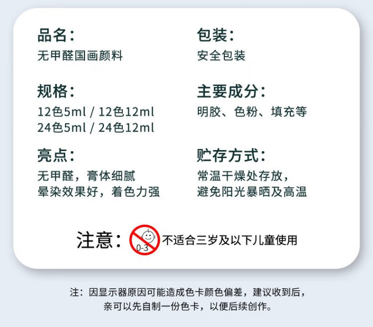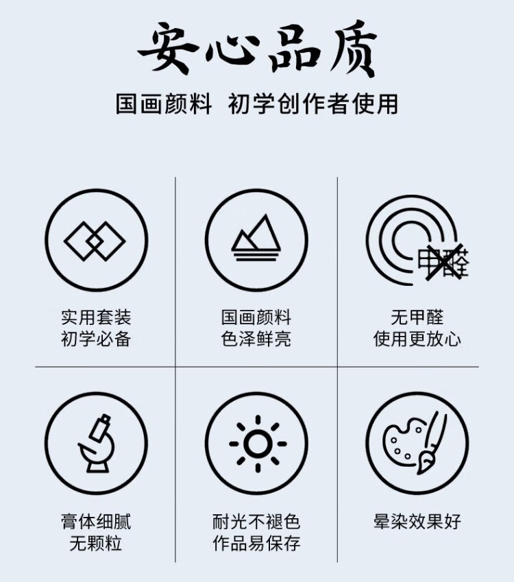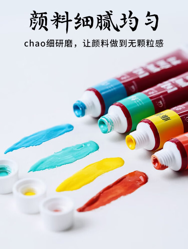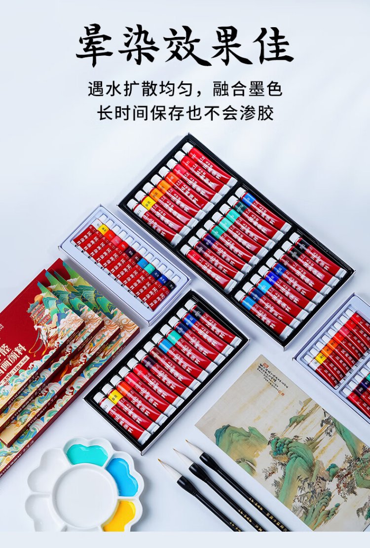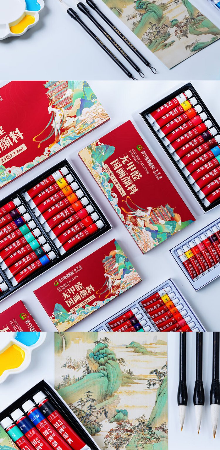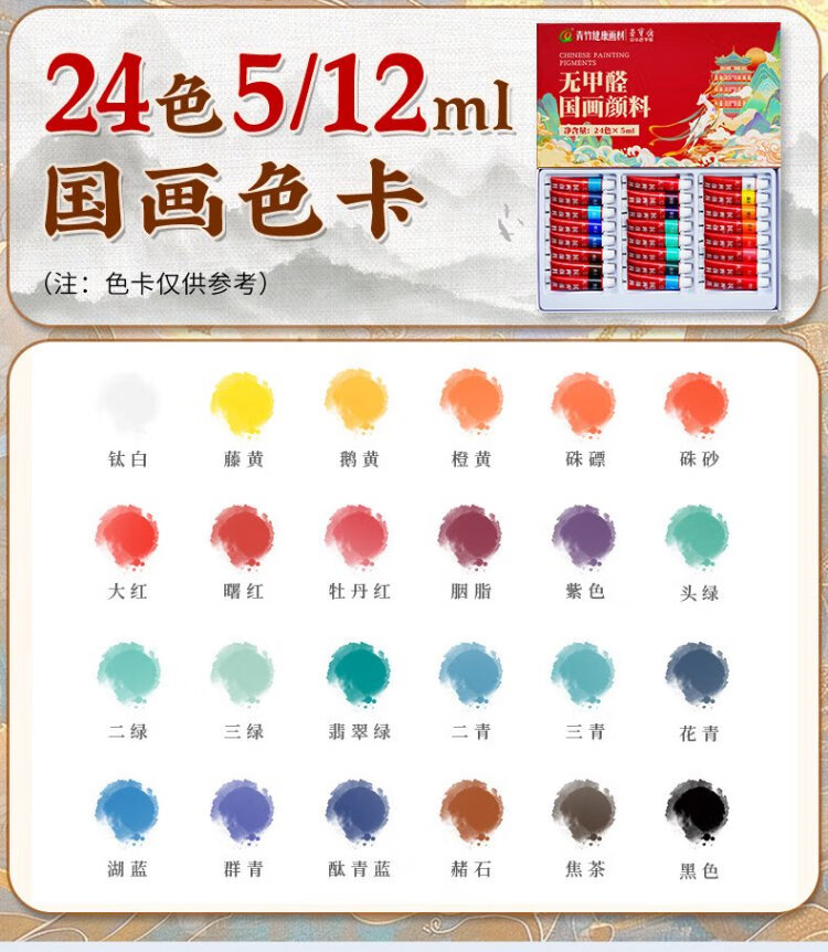 Qingzhu painting materials (CHINJOO) Chinese painting pigment set ink painting formaldehyde-free safe material for adult beginners professional art painting Qingzhu & Rongbaozhai joint model (12ml*12 colors)