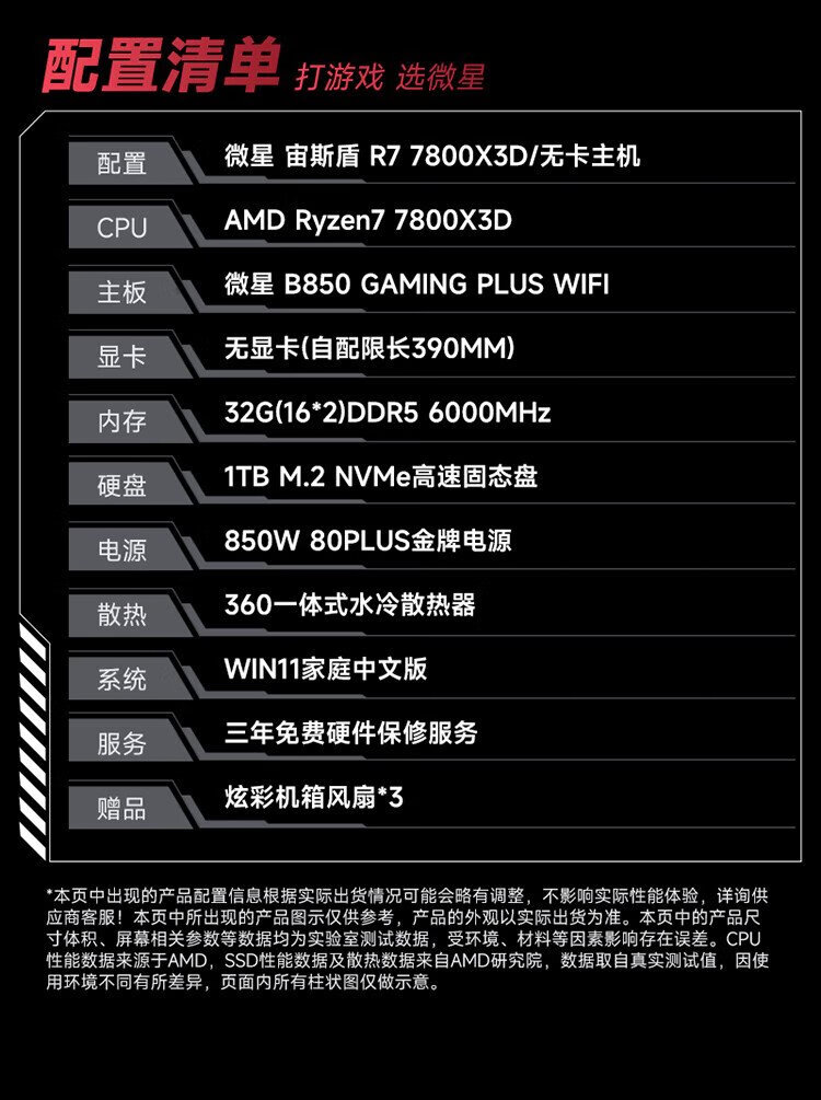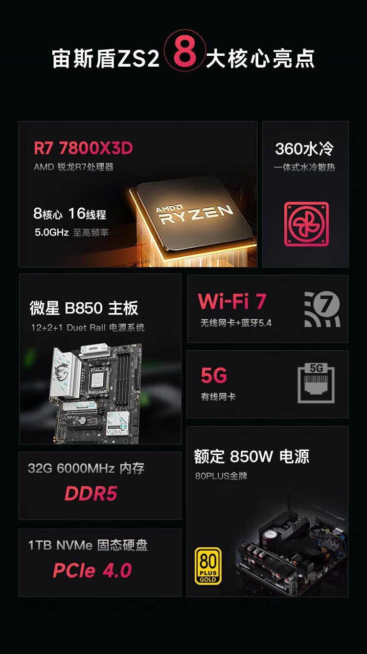 AMD&MSI Aegis ZS2 National Subsidy Ryzen R7 7800X3D/16G/1T/850W Gold Medal E-Sports Game Design Desktop Computer Cardless Host Complete Machine