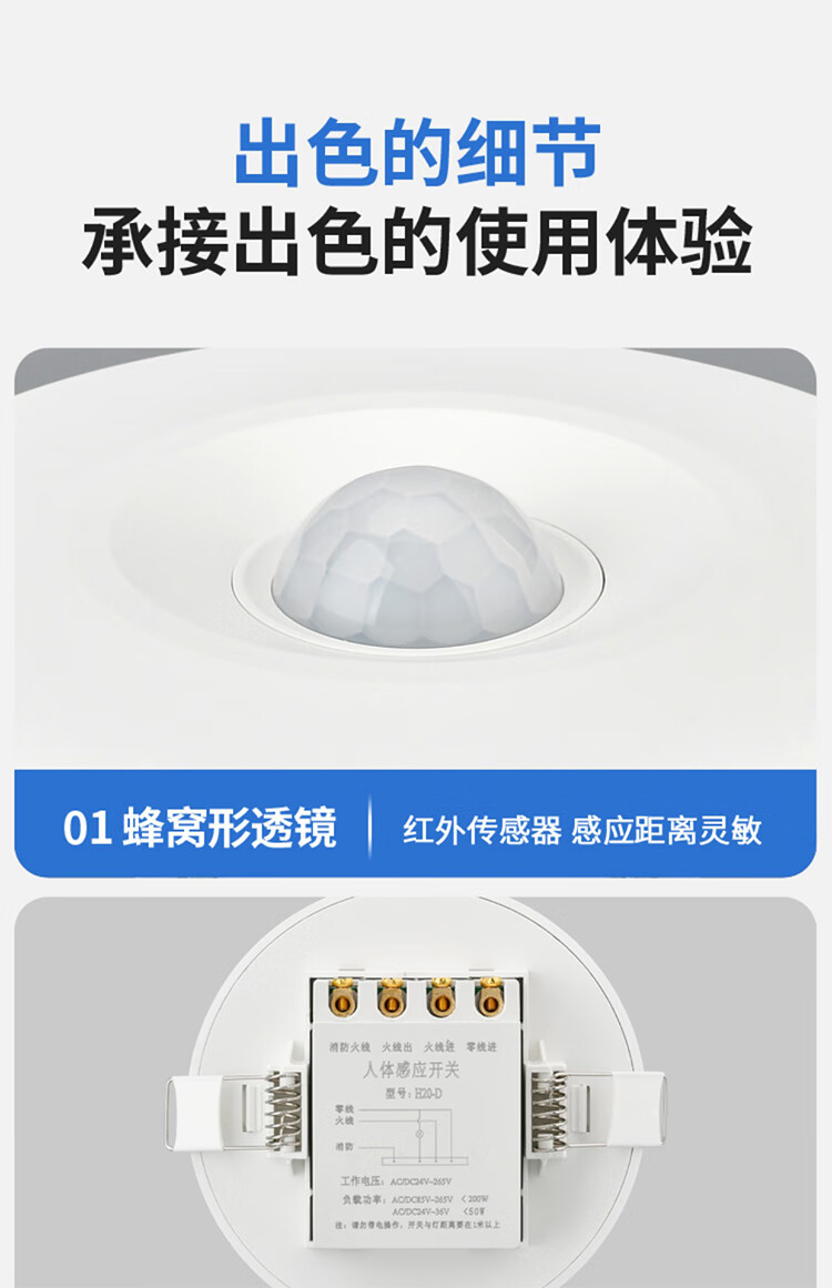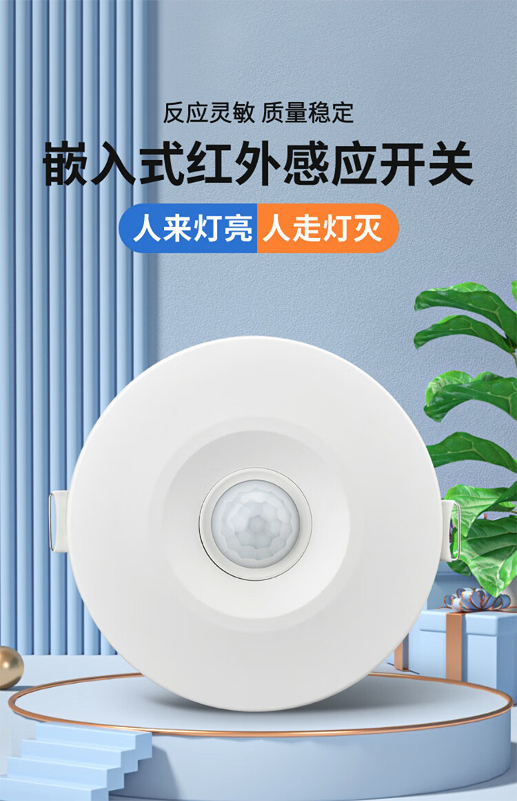 Tianshili ceiling-embedded human body induction delay switch engineering light-controlled infrared radar induction switch second-line human body induction switch