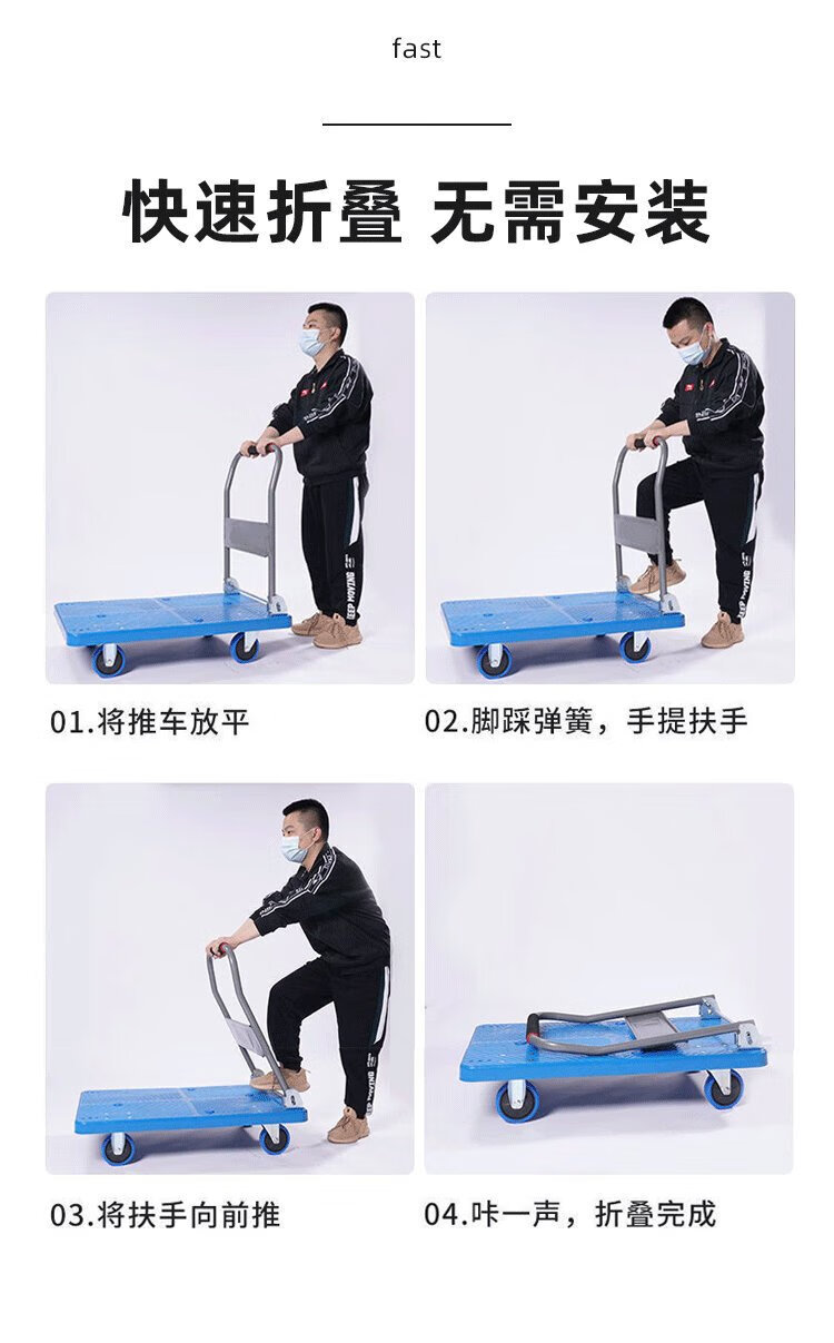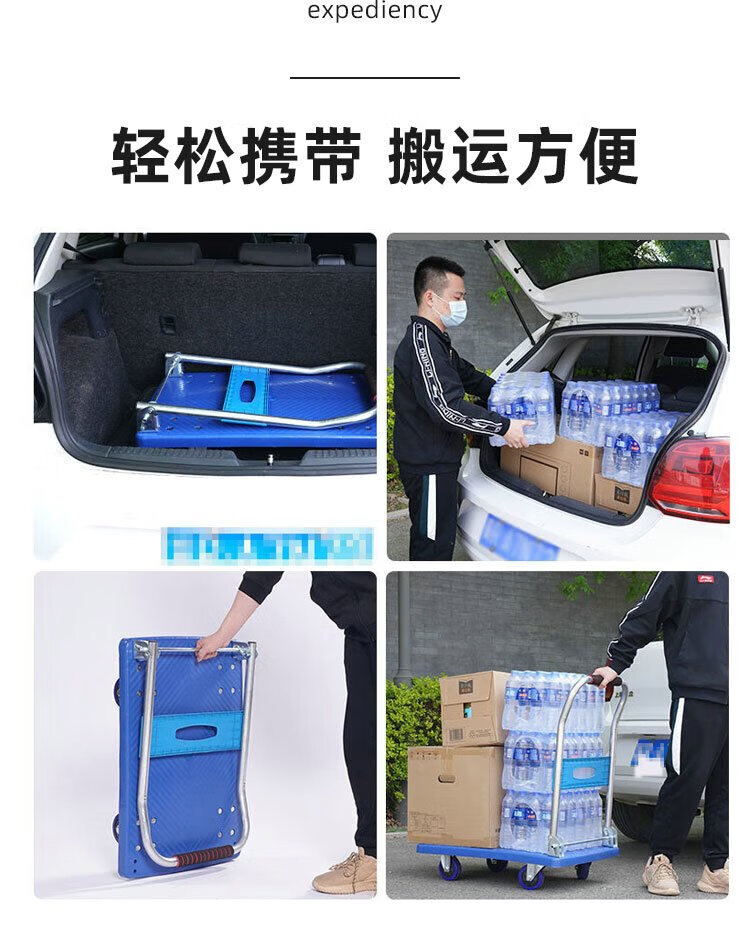 Leyou Baiyi small trolley flat trolley 90*60cm six-tube load-bearing decoration moving small trailer transport truck small puller driver pull truck pull truck folding trailer