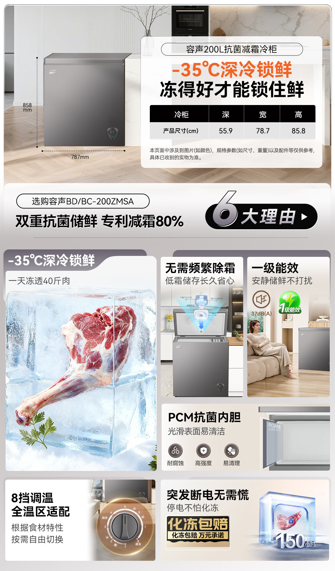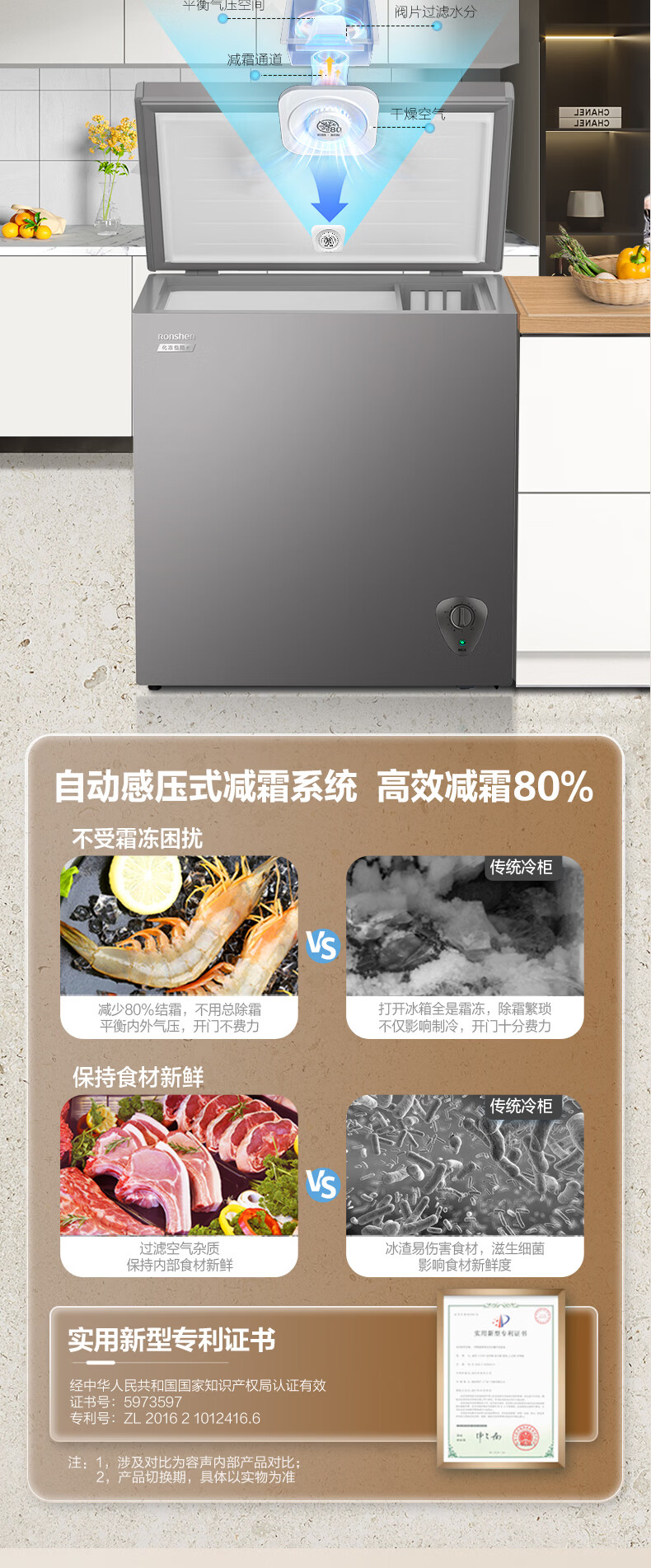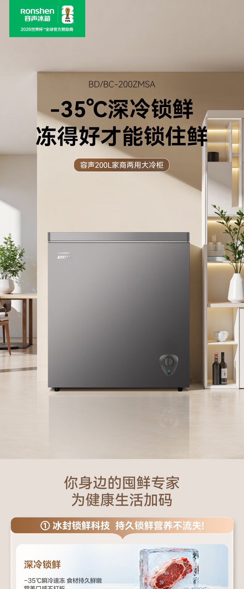 Ronshen 200-liter freezer household first-class energy efficiency frost reduction refrigeration and freezing dual-purpose stocking small freezer maternal and infant breast milk small refrigerator BD/BC-200ZMSA national subsidy